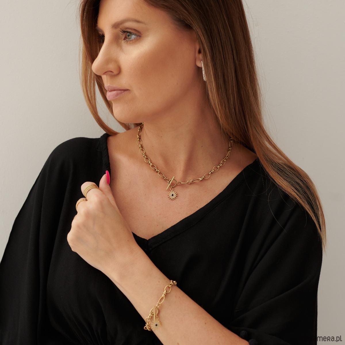 Zaprojektowana z myślą o kobiecie, która kocha światło, siłę i subtelny blask na co dzień. Ta bransoletka została wykonana z wysokiej jakości pozłacanej stali szlachetnej, która jest antyalergiczna, bezpieczna dla skóry i odporna na działanie czasu.