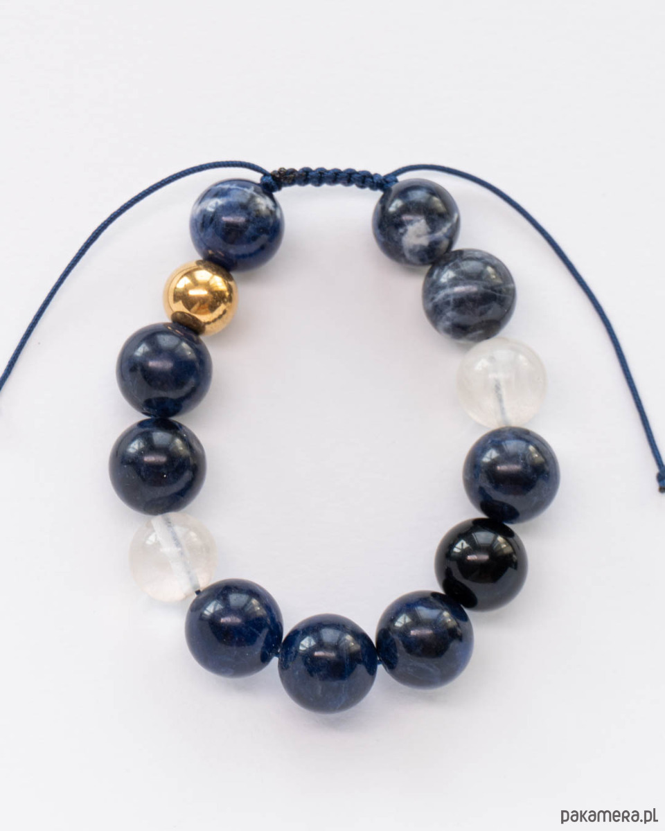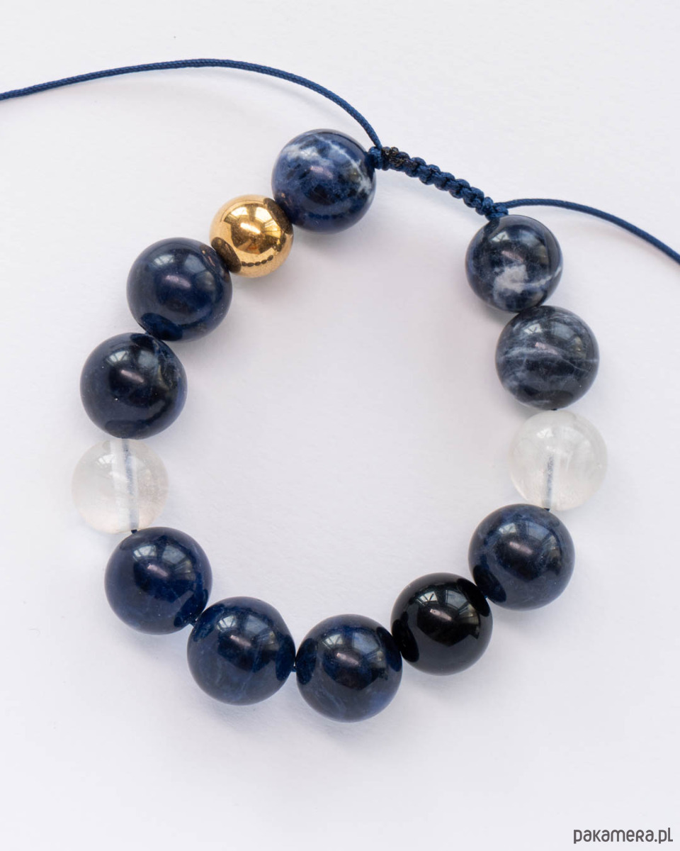 Bransoletka z pięknych dużych kamieni naturalnych: sodalit, onyks, hematyt, kwarc.