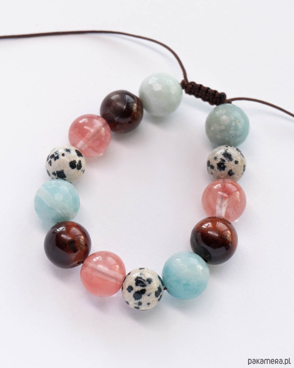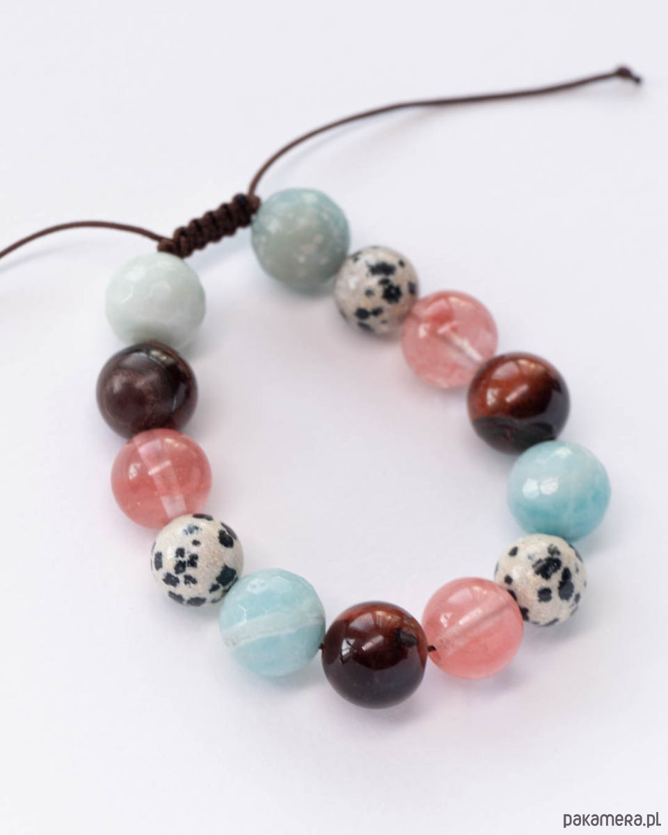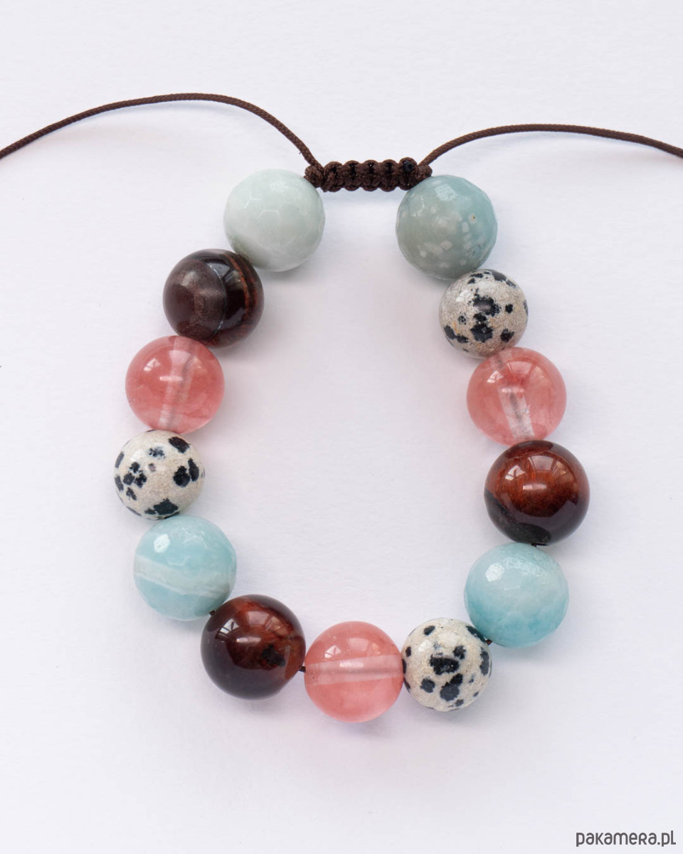 - Rodzaj kamienia: amazonit, kwarc różowy, tygrysie oko