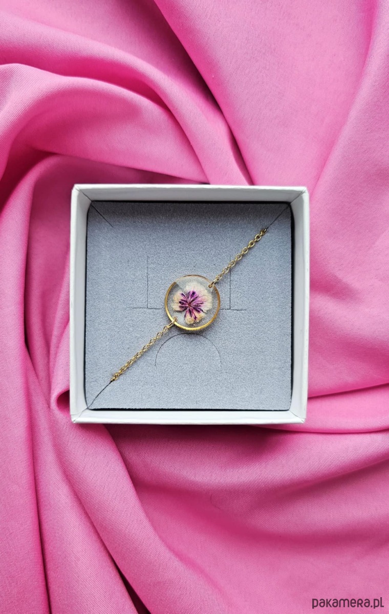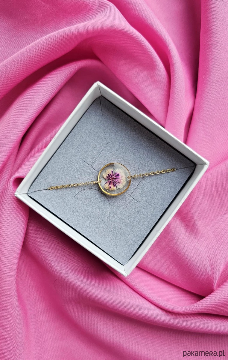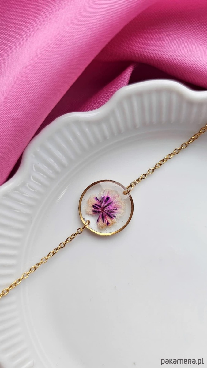 Bransoletka z kwiatami suszonej gipsówki to unikatowa, ręcznie wykonana biżuteria z serii Harmonia.