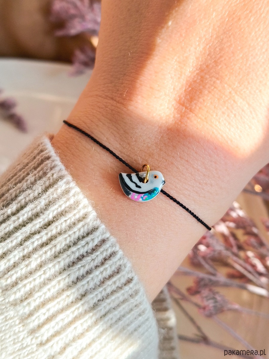 Bransoletka z gołębiem, wesoła biżuteria z ptakiem, kolorowy akcent stylu