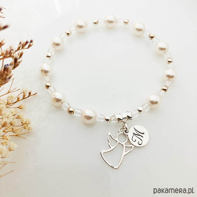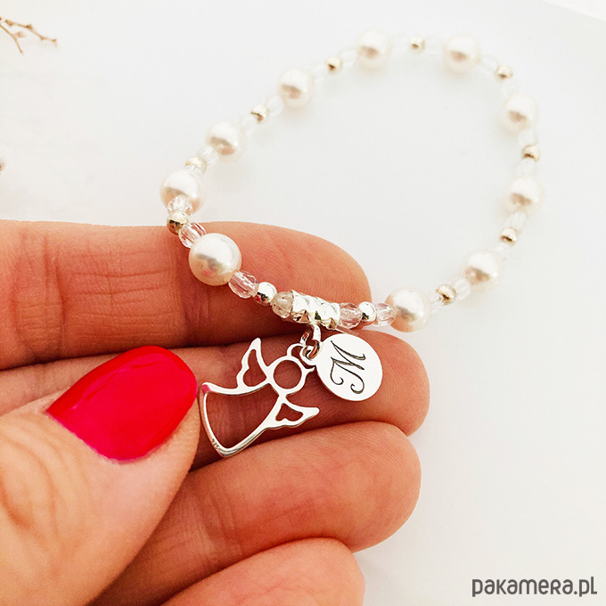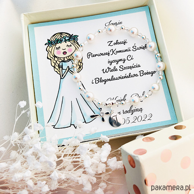 Delikatna bransoletka różaniec będzie wyjątkowym prezentem z okazji Pierwszej Komunii. Zawiera piękny różaniec bransoletkę z pereł GAVBARI PEARLS z wybranym inicjałem i aniołkiem ze srebra 925 oraz kartę z życzeniami.