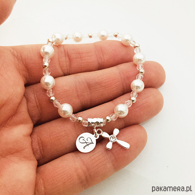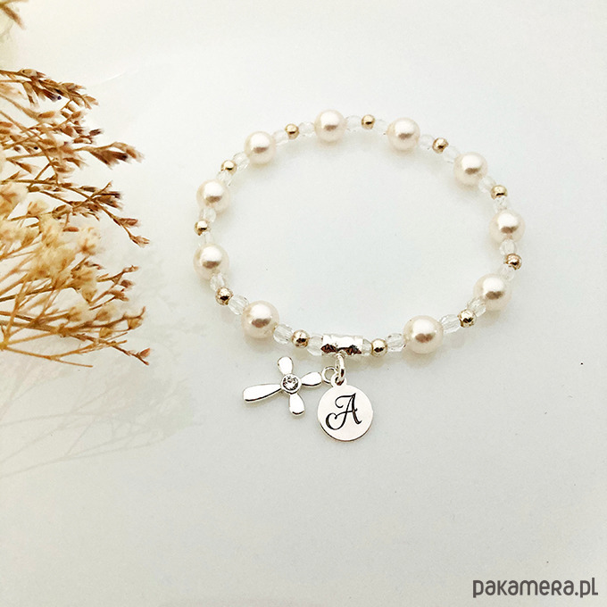 Bransoletka z inicjałem Różaniec KOMUNIA