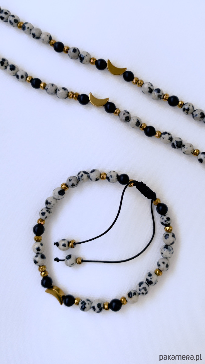 Nasza bransoletka została starannie wykonana z wysokiej jakości jaspisu dalmatyńskiego, co gwarantuje trwałość i piękno przez wiele lat. Kamienie zostały dobrane z najwyższą precyzją, aby stworzyć kompozycję harmonijnych kontrastów, która przyciąga wzrok i dodaje blasku Twojemu wyglądowi.