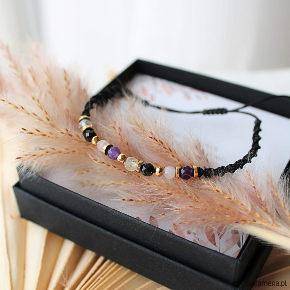 Bransoletka z kamieni cytryn, kwarc różowy, czarny turmalin, ametyst