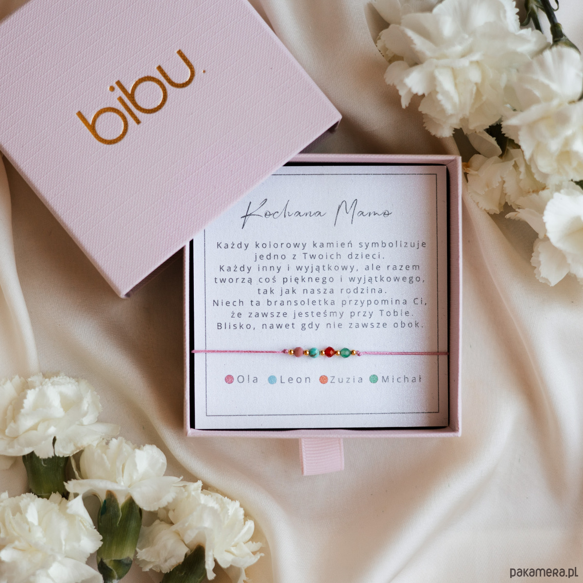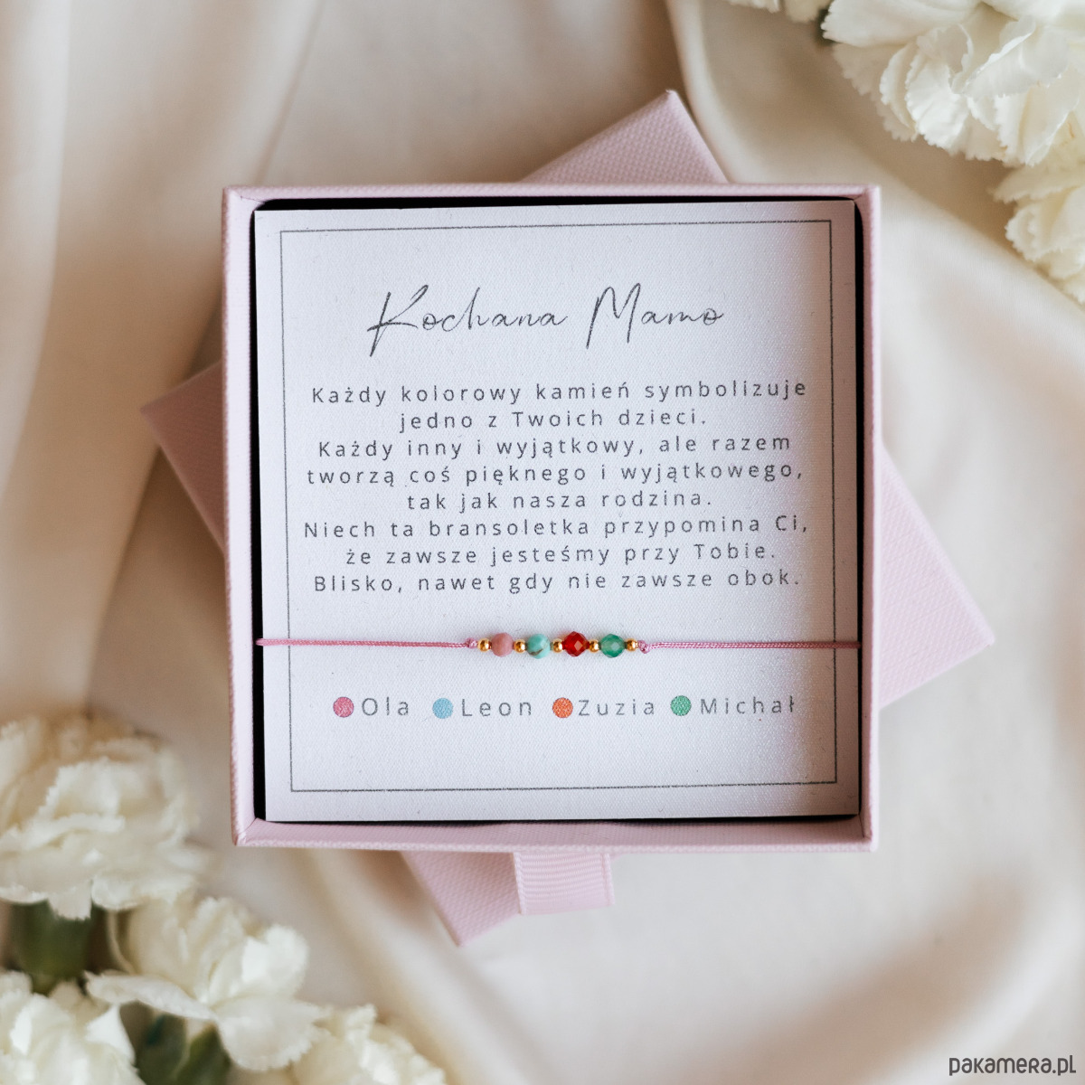Podaj liczbę kamieni oraz imiona dzieci w uwagach do zamówienia, aby stworzyć unikalną bransoletkę z imionami dzieci.
