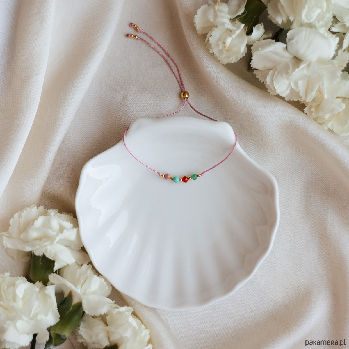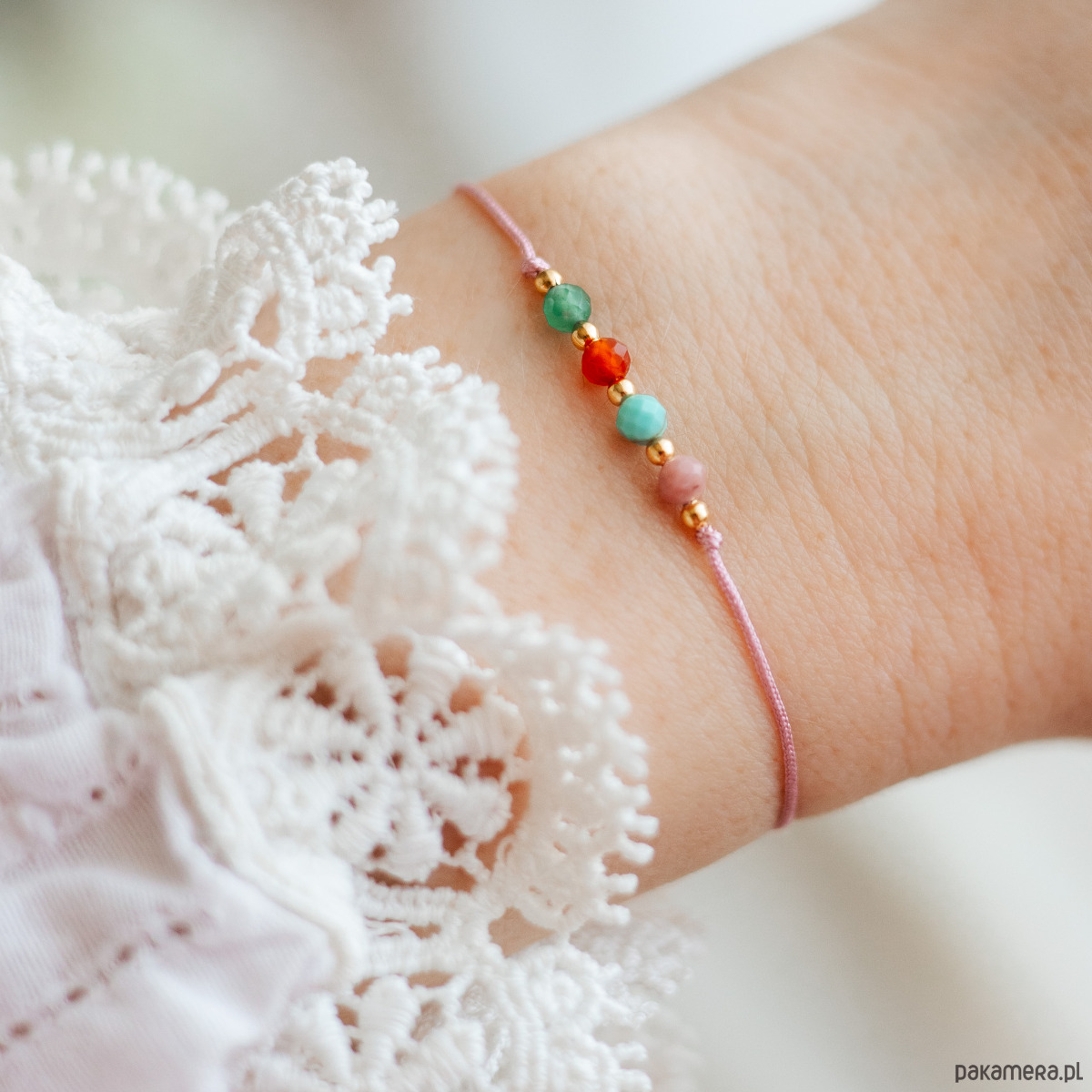 Każda bransoletka jest niepowtarzalna – naturalne kamienie mogą delikatnie różnić się kolorem. Na zdjęciu pokazano wariant z 4 kamieniami.