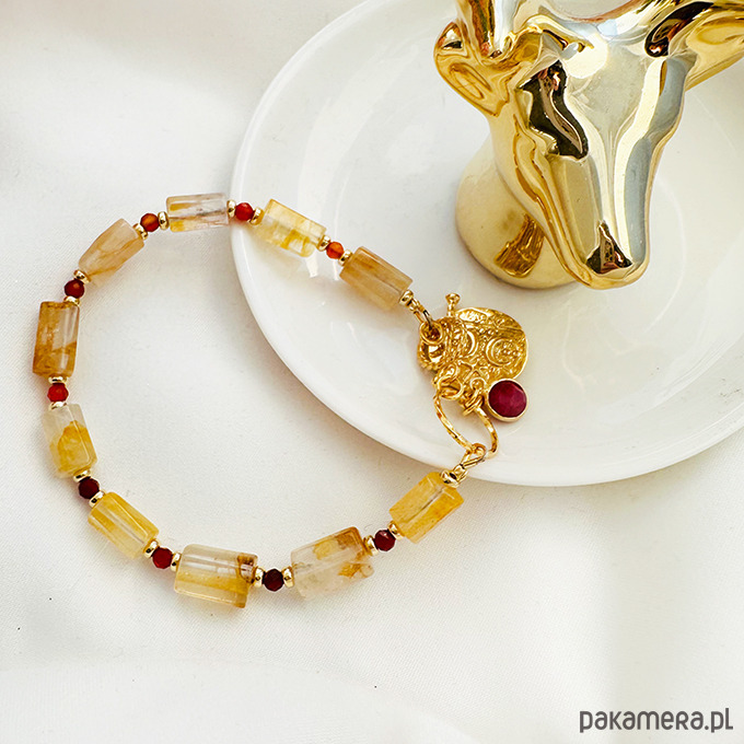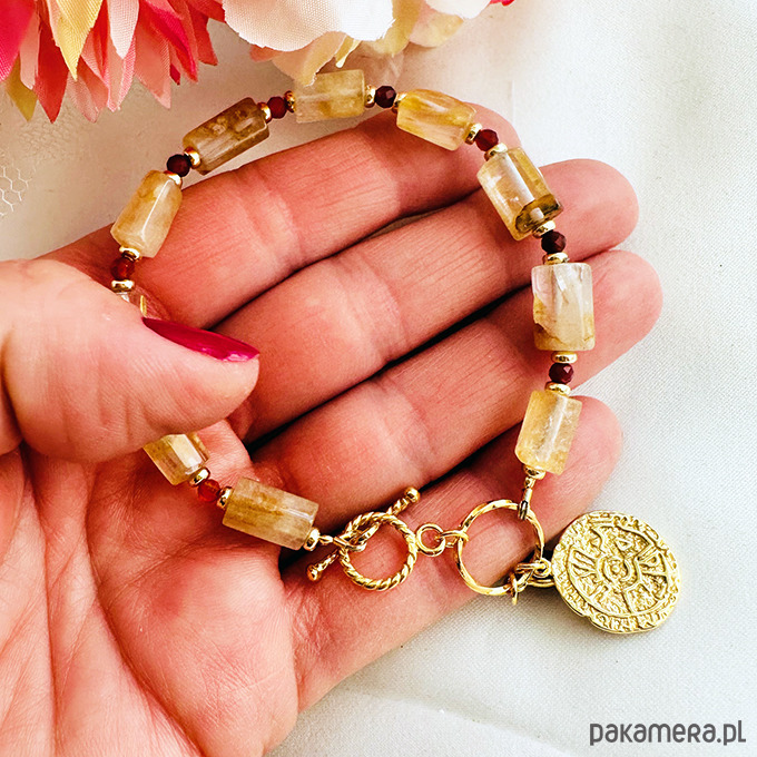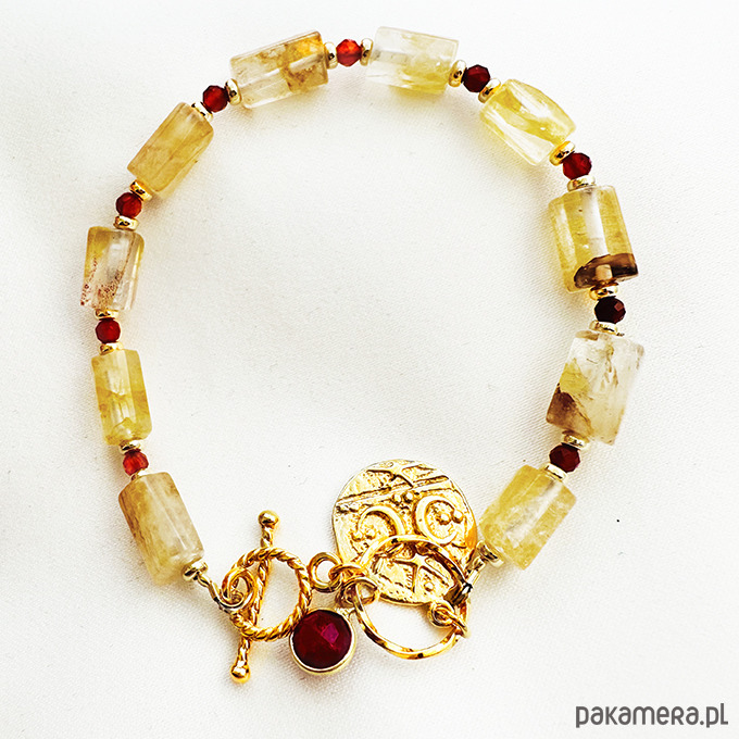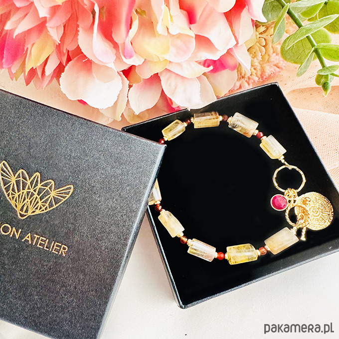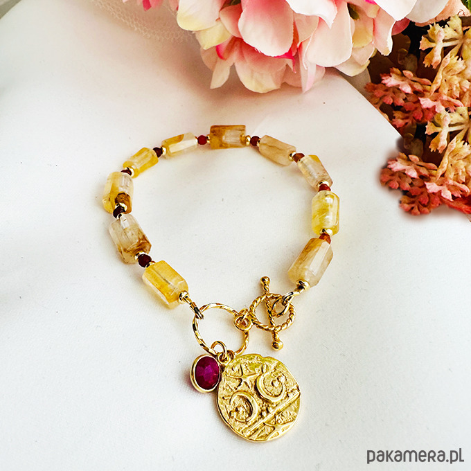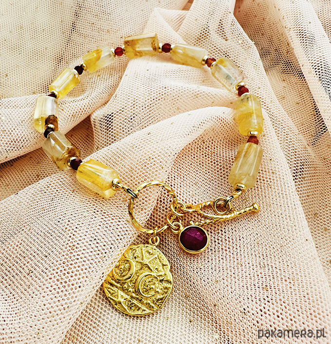 Bransoletka z kamieni , kryształ górski, księżyc, rubin