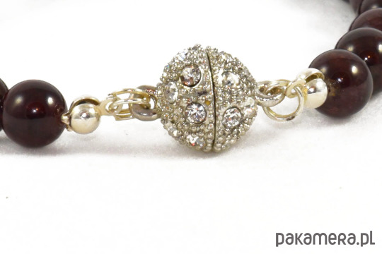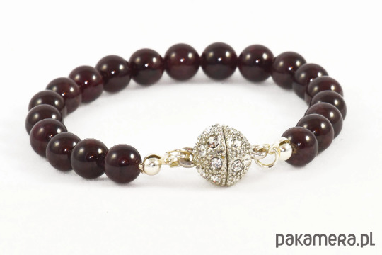 Delikatna i elegancka bransoletka z kamieni granatu. Zdecydowana barwa i piękna ozdobna zawieszka z cyrkoniami dodaje uroku oraz sprawdza że bransoletka wygląda wspaniale. Idealnie zdobi nadgarstek i zwraca uwagę otoczenia.