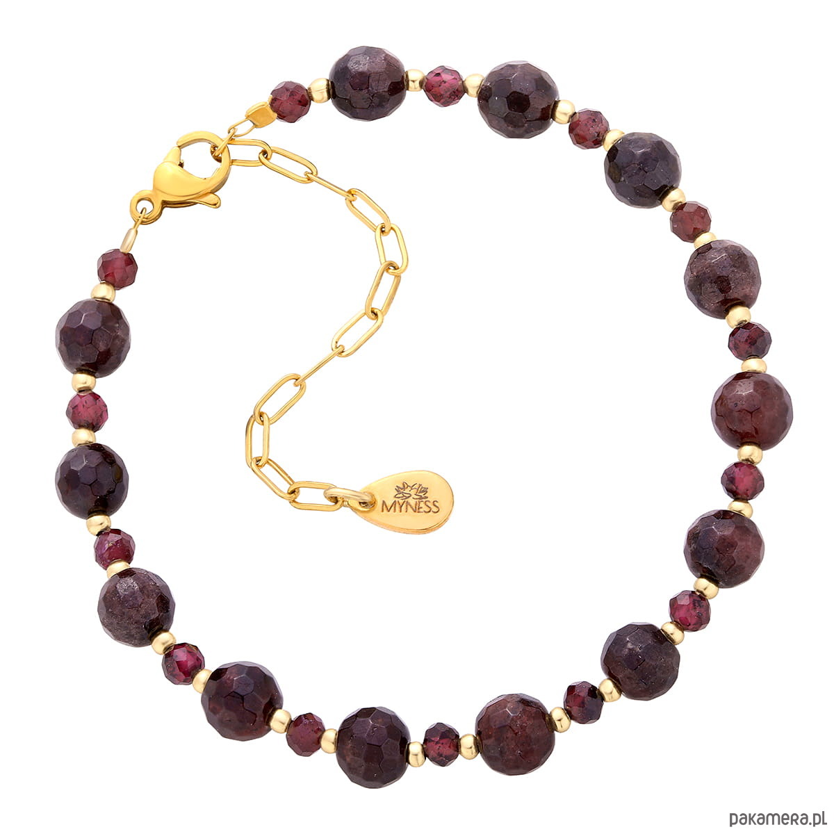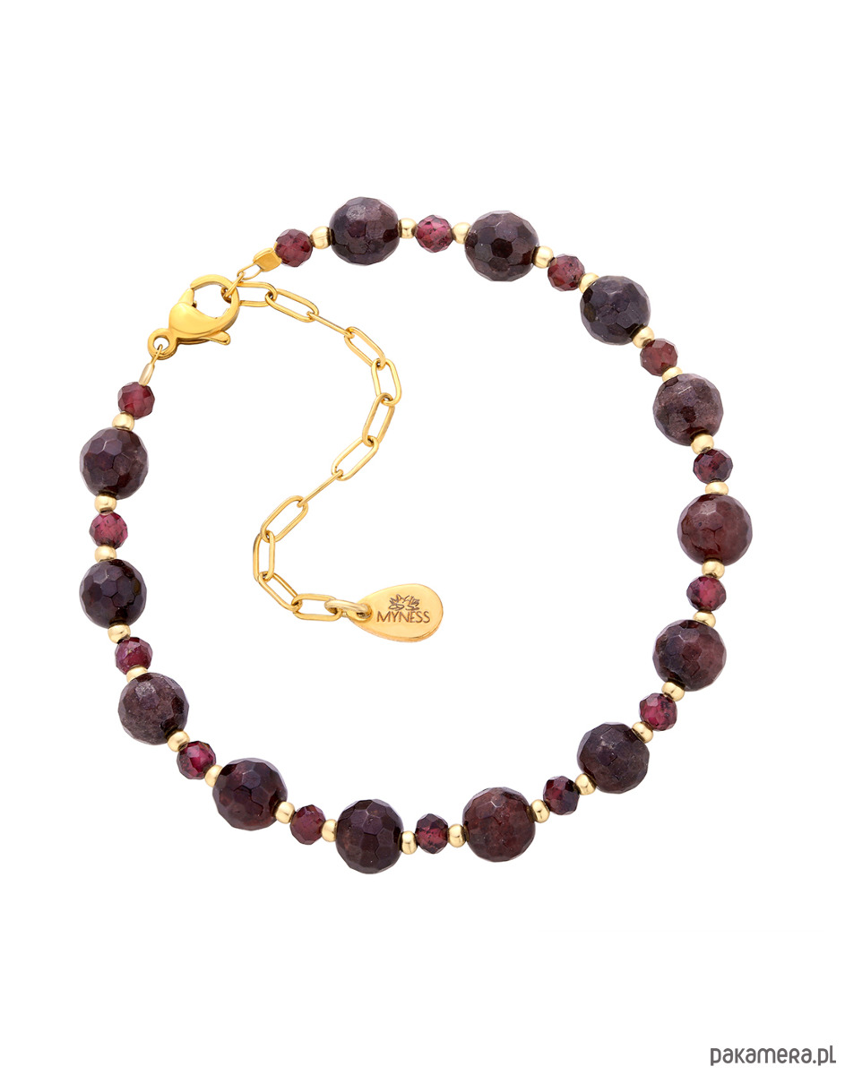Granat - kamień odwagi. Dodaje pewności siebie i motywacji do działania. Przyciąga pozytywne zmiany, wspiera w osiąganiu celów oraz pomaga przezwyciężać trudności. Symbol miłości i wierności.