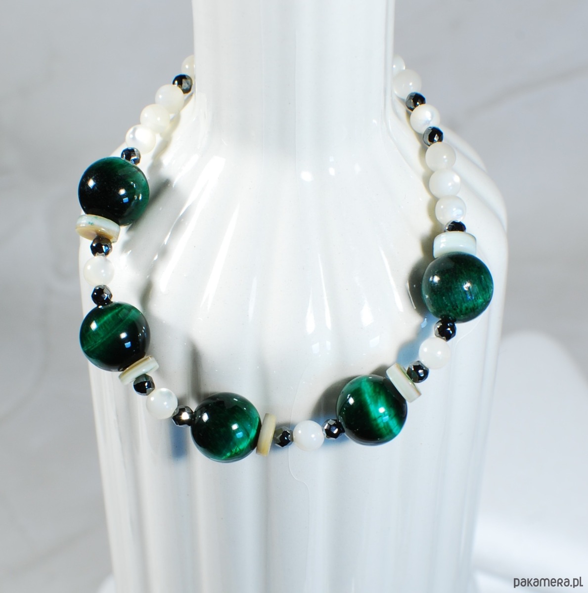 Ręcznie wykonana bransoletka z naturalnych kamieni tygrysie oko, masa perłowa ✨