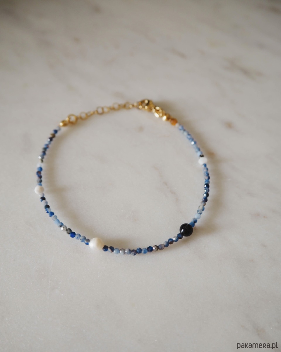 Ta radosna bransoletka jest zrobiona z drobnych kamieni naturalnych sodalit.