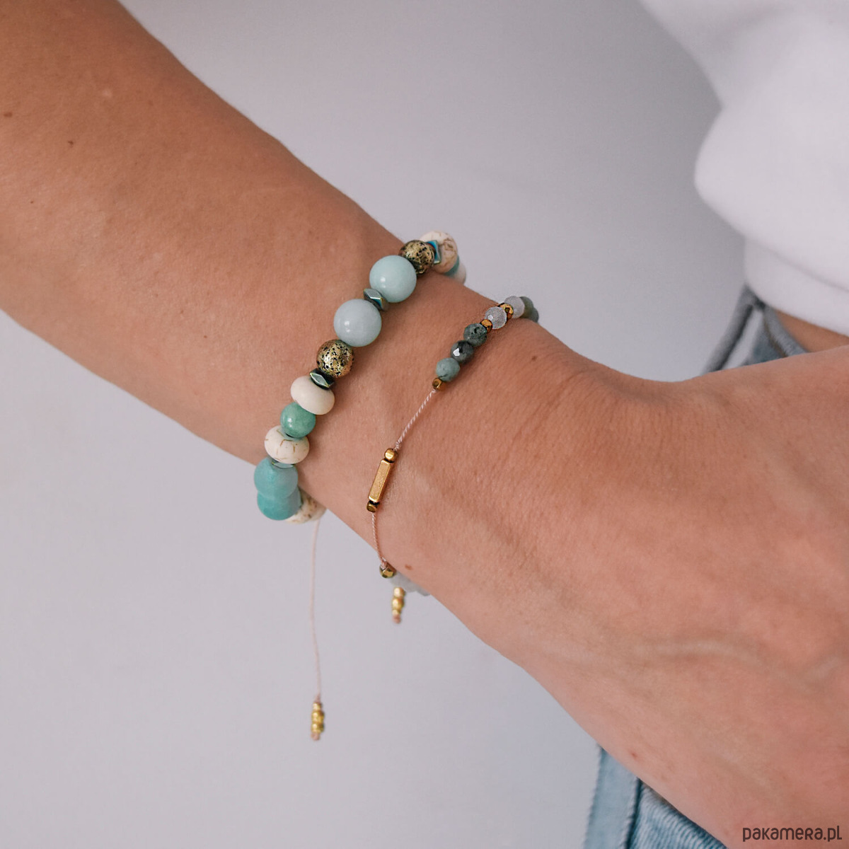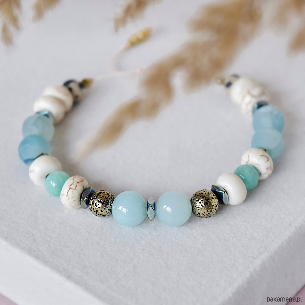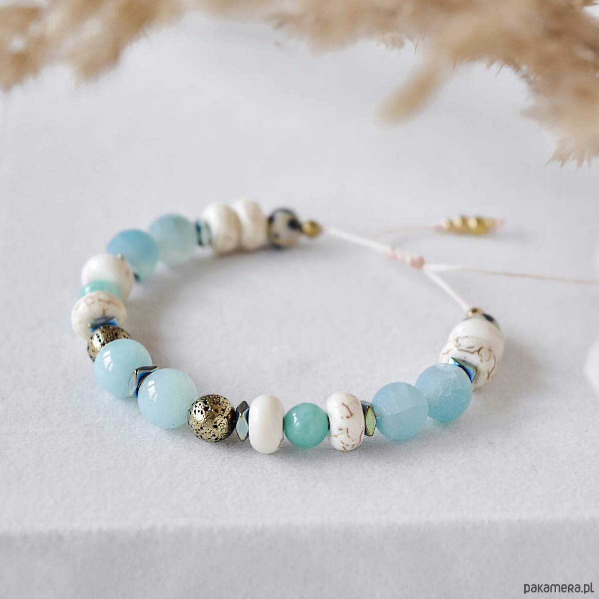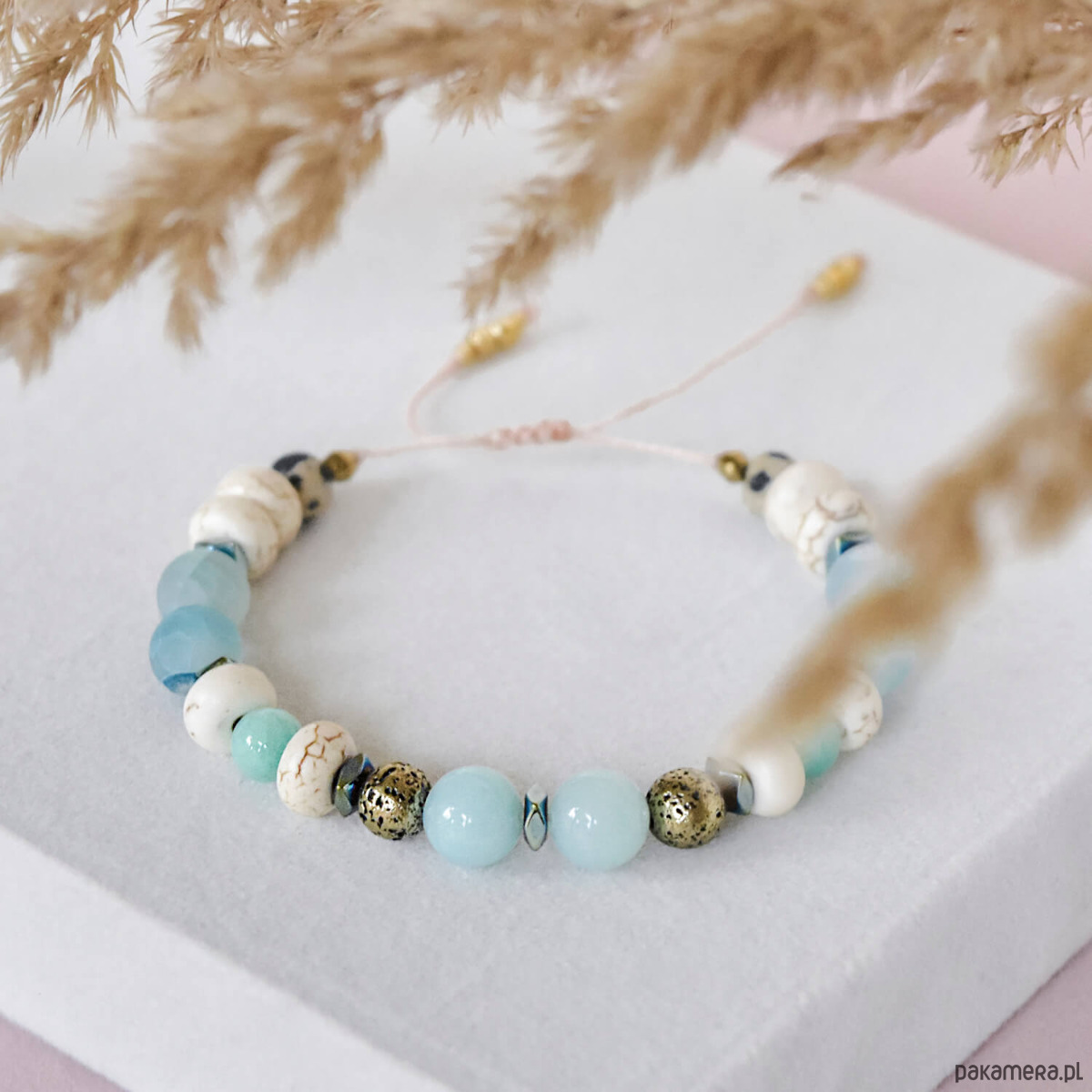 Bransoletka została wykonana ręcznie na wytrzymałym nylonowym sznurku, z regulowanym zapięciem makramowym, które pozwala wygodnie dopasować ją do nadgarstka. Jest lekka, komfortowa w noszeniu i doskonale sprawdzi się zarówno jako codzienny dodatek, jak i przemyślany prezent.