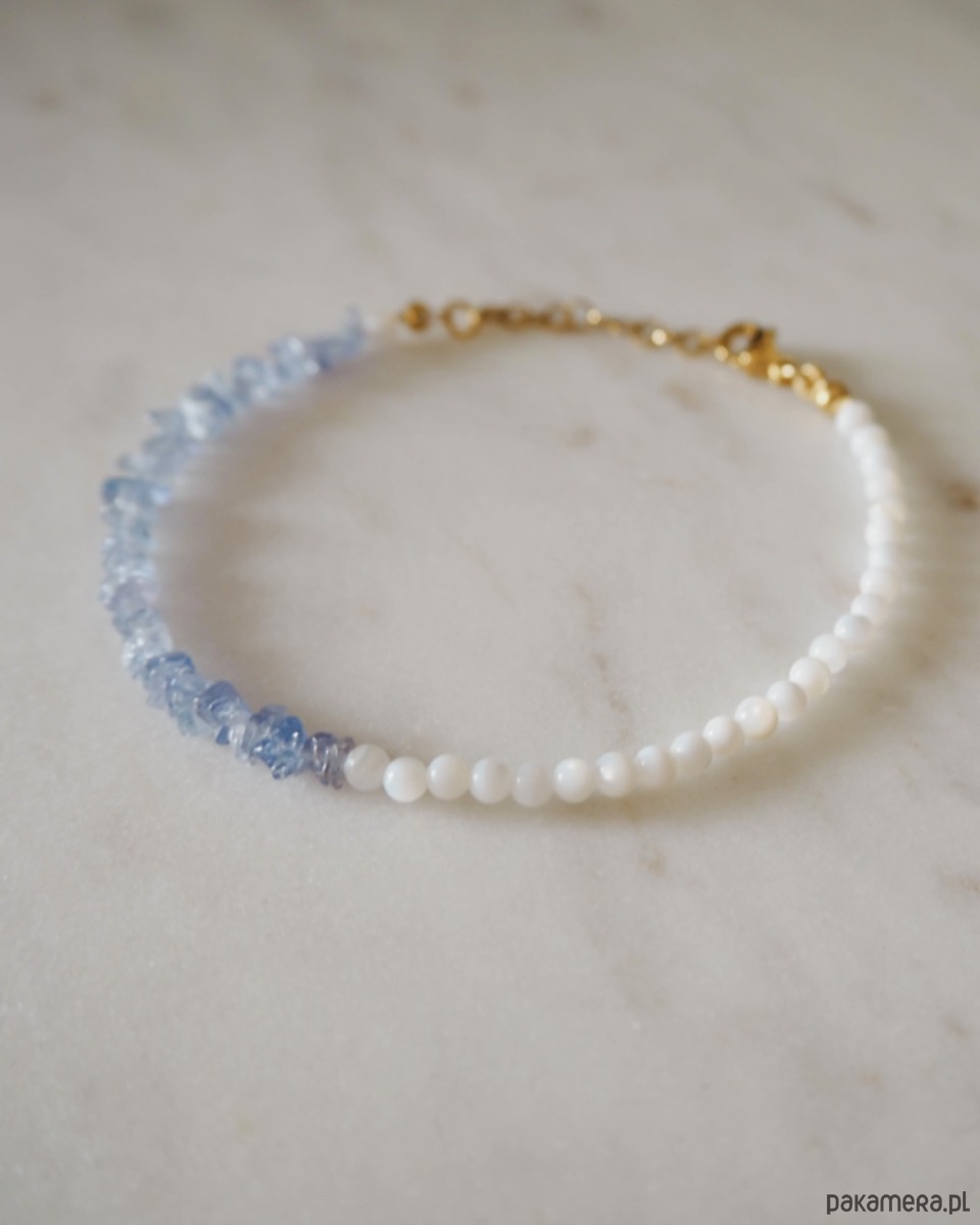 Bransoletka z kamieni naturalnych tanzanit i muszla