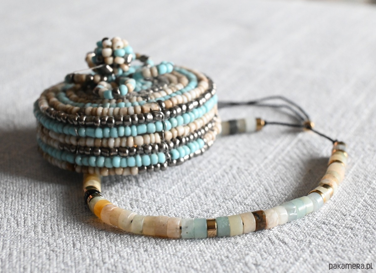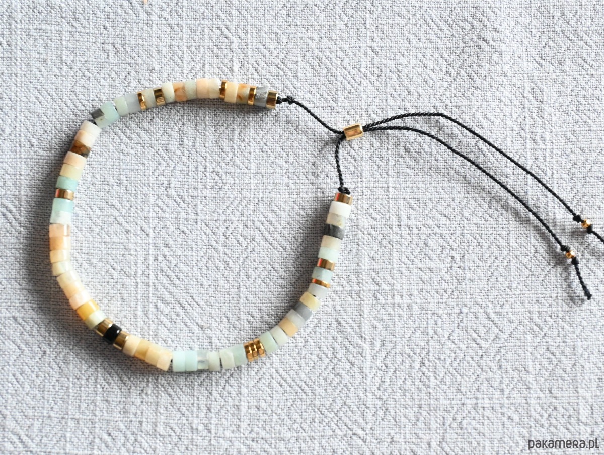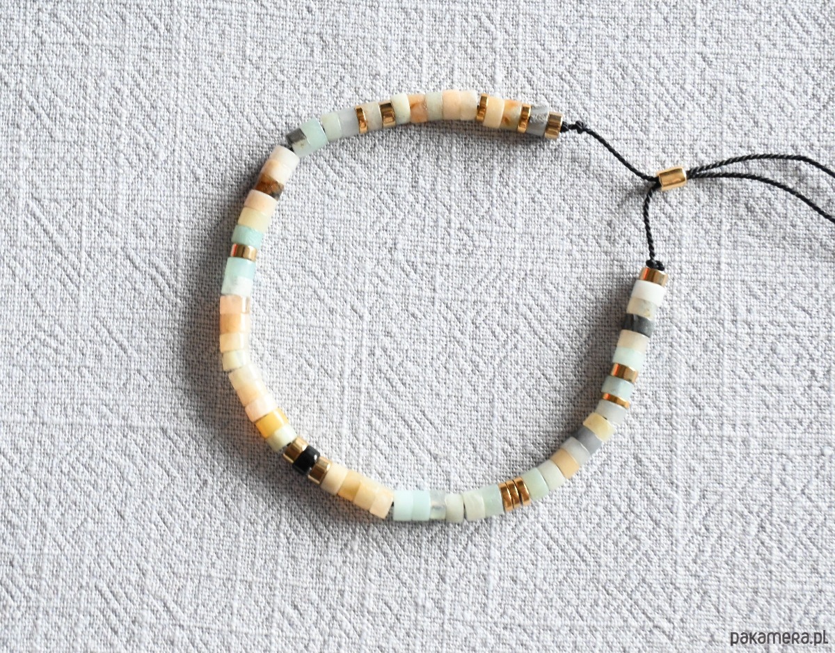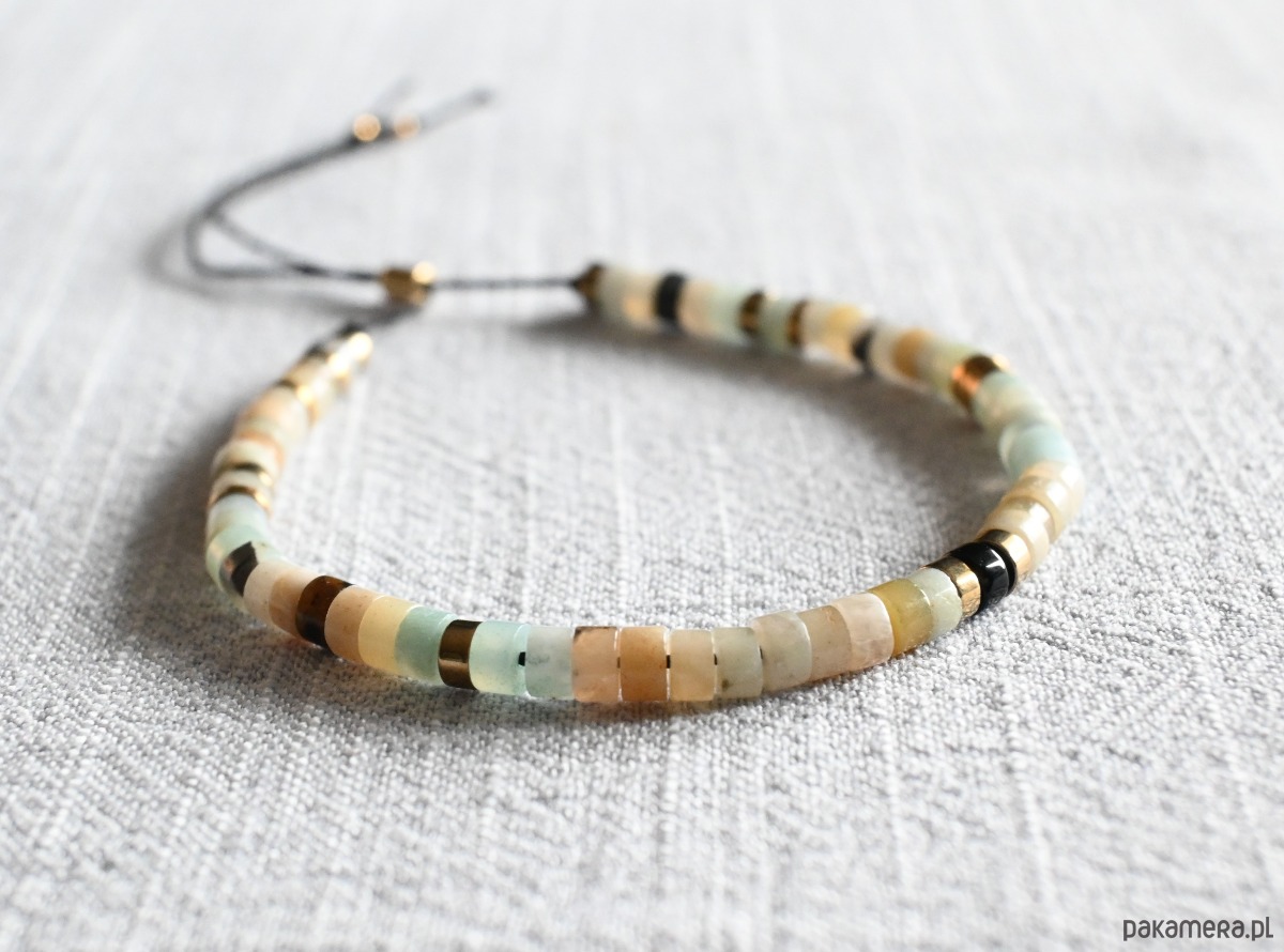 Bransoletka z naturalnymi kamieniami wykonana własnoręcznie w ramach projektu własnej marki "mniej więcej".
