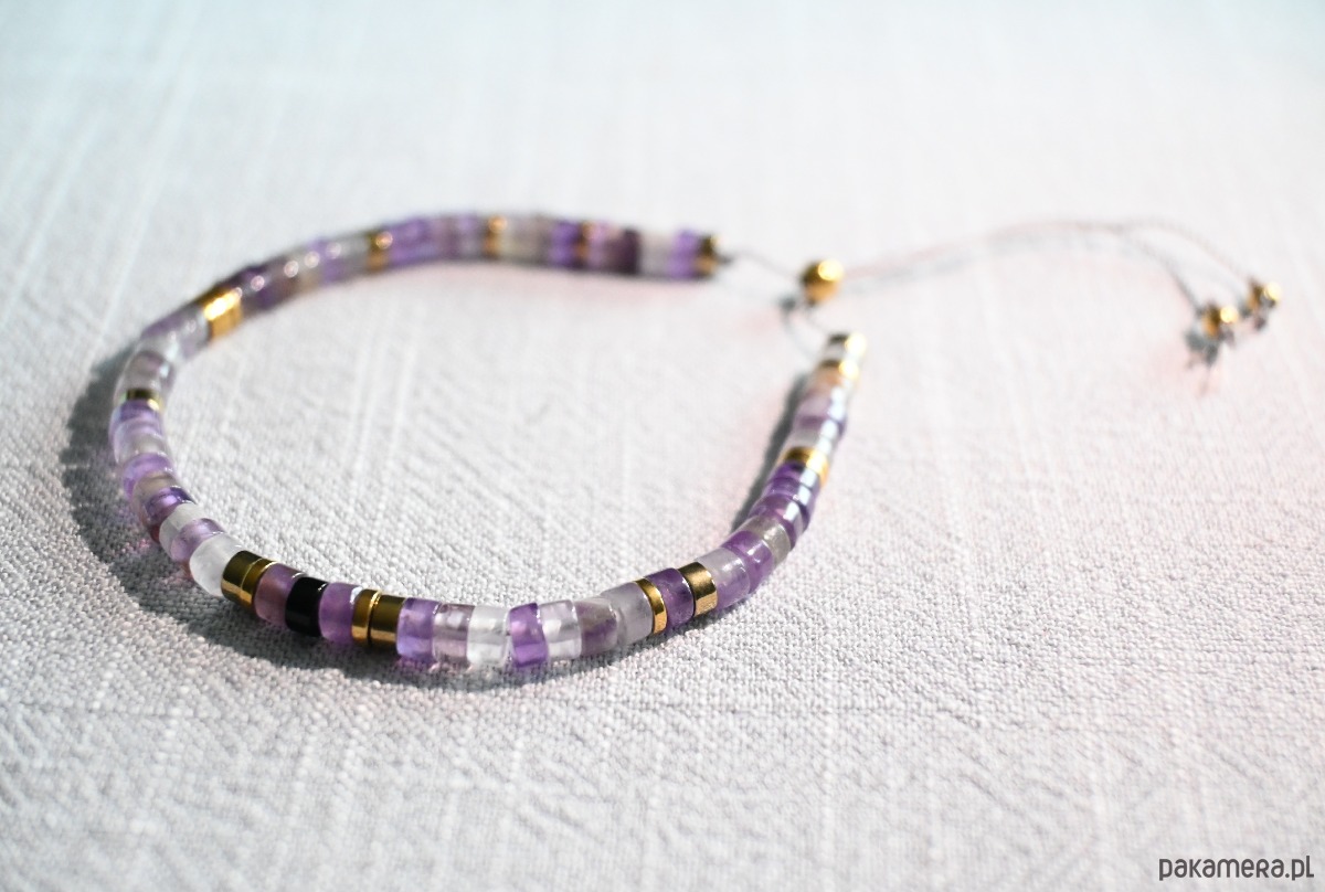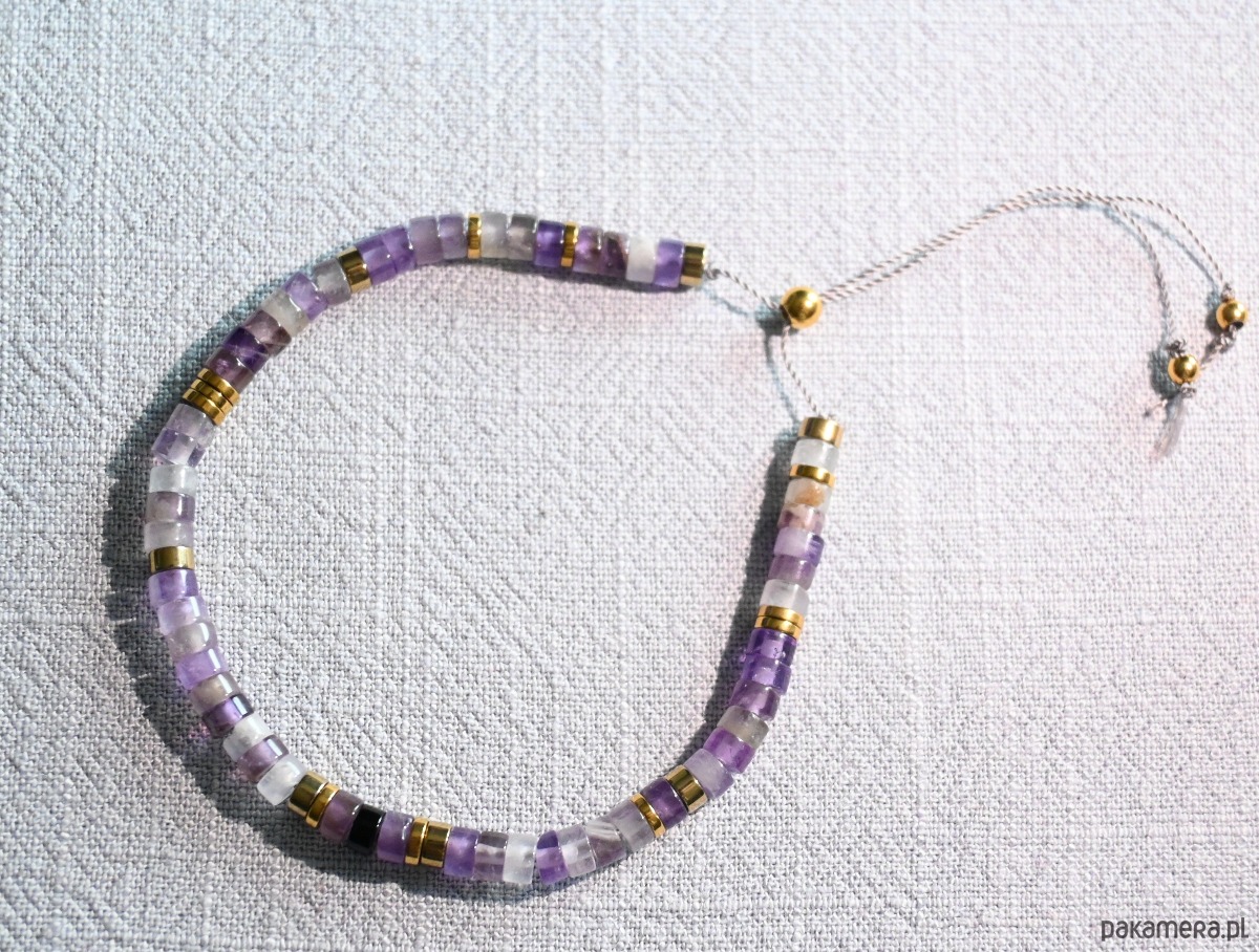 Bransoletka z naturalnymi kamieniami wykonana własnoręcznie w ramach projektu własnej marki "mniej więcej".