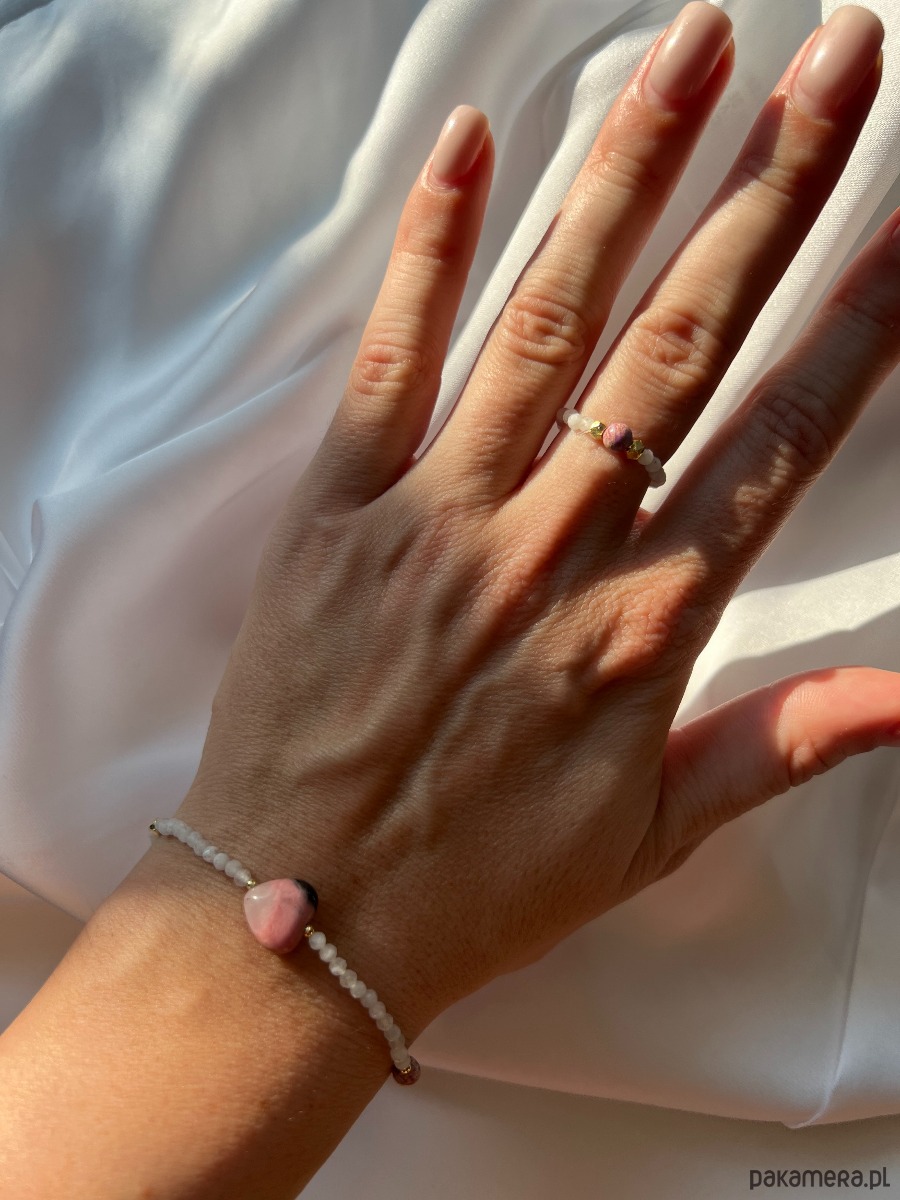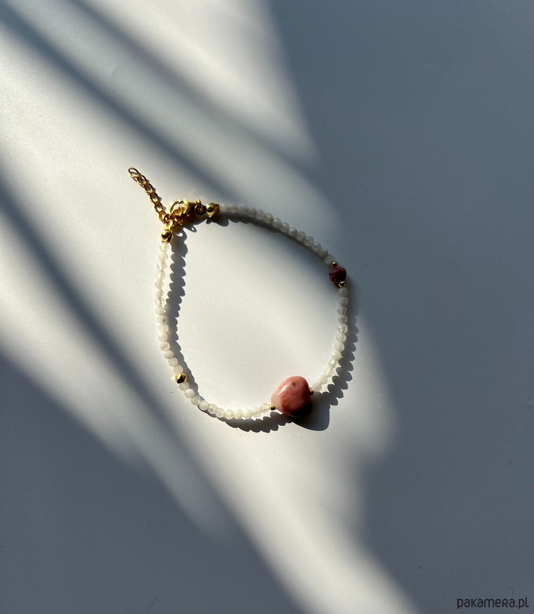 Bransoletka z kamieniem księżycowym i sercem z kamienia agat