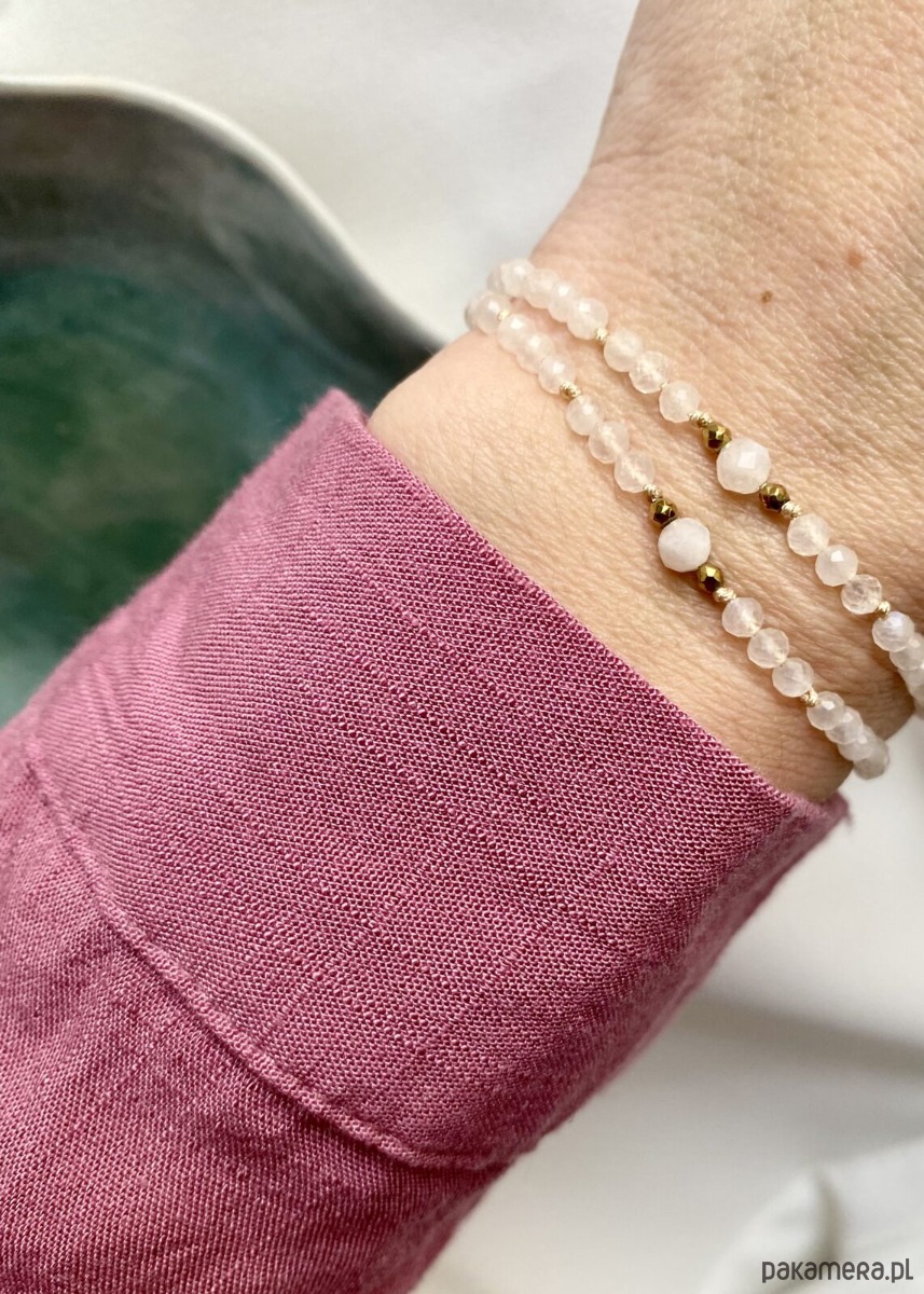 Kamień księżycowy, to minerał ceniony za swoje subtelne, opalizujące refleksy i wyjątkowe właściwości. Znany jest jako symbol intuicji, wewnętrznego spokoju i kobiecości. Jego delikatna kolorystyka, przeplatająca odcienie bieli, szarości i lekkiego błękitu, nadaje bransoletce unikalnego charakteru, który przyciąga uwagę.