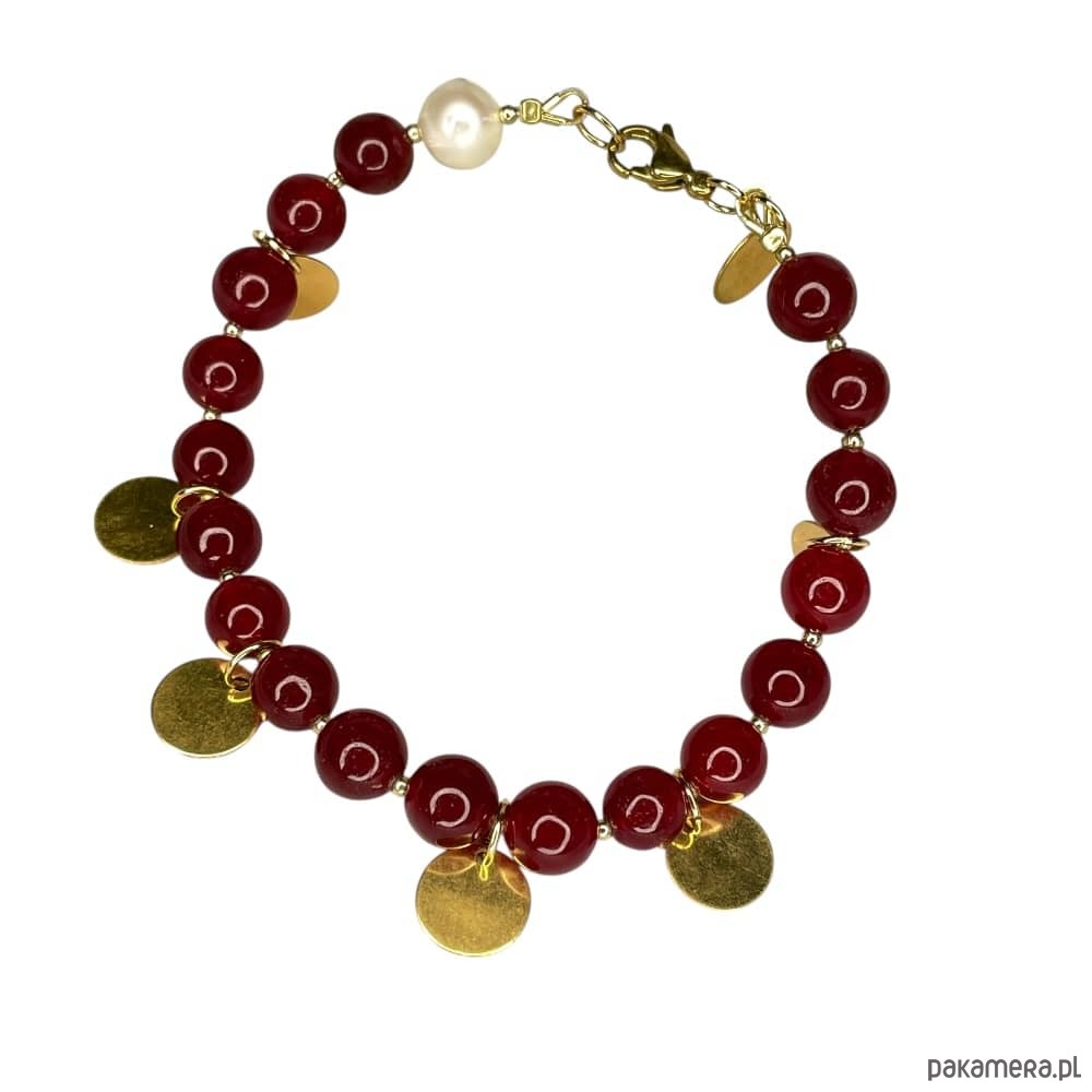 Bransoletka z karneolu i perły to połączenie ponadczasowej elegancji z subtelną nutą nowoczesności. Nasycona barwa karneolu przykuwa wzrok, a pojedyncza perła umieszczona przy zapięciu przełamuje regularność formy, nadając całości lekko artystyczny i świeży wyraz.