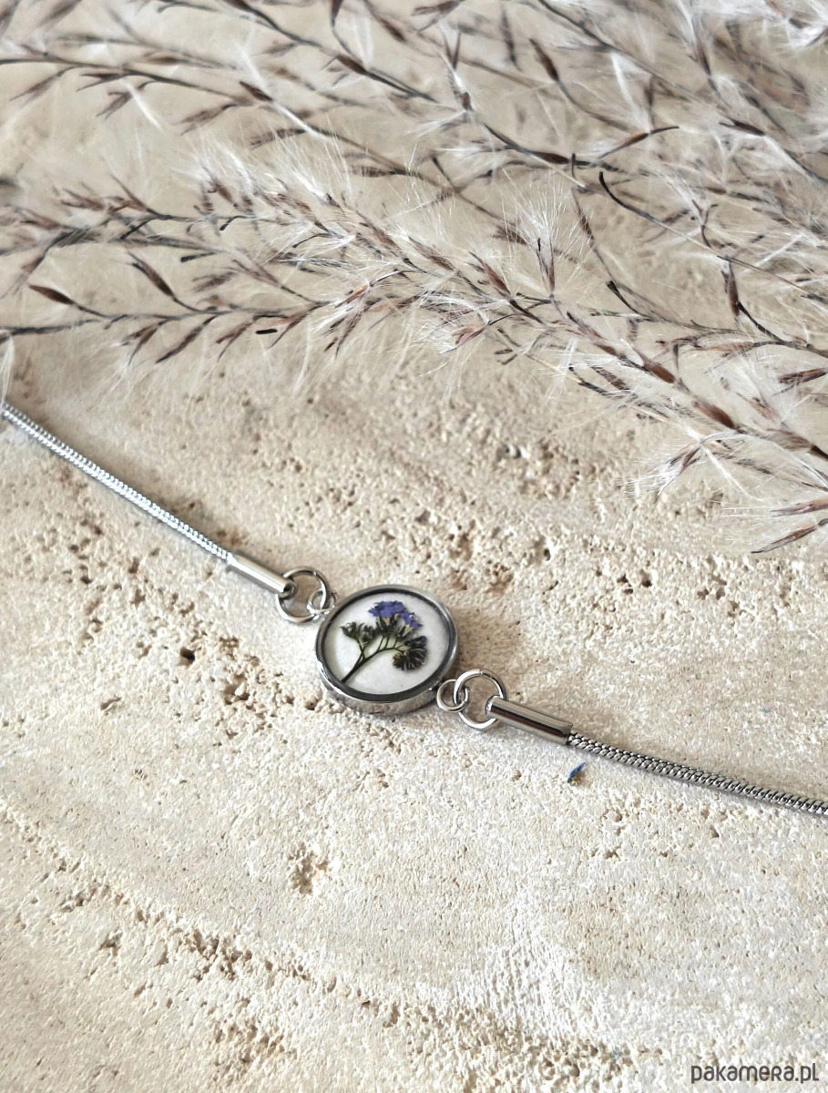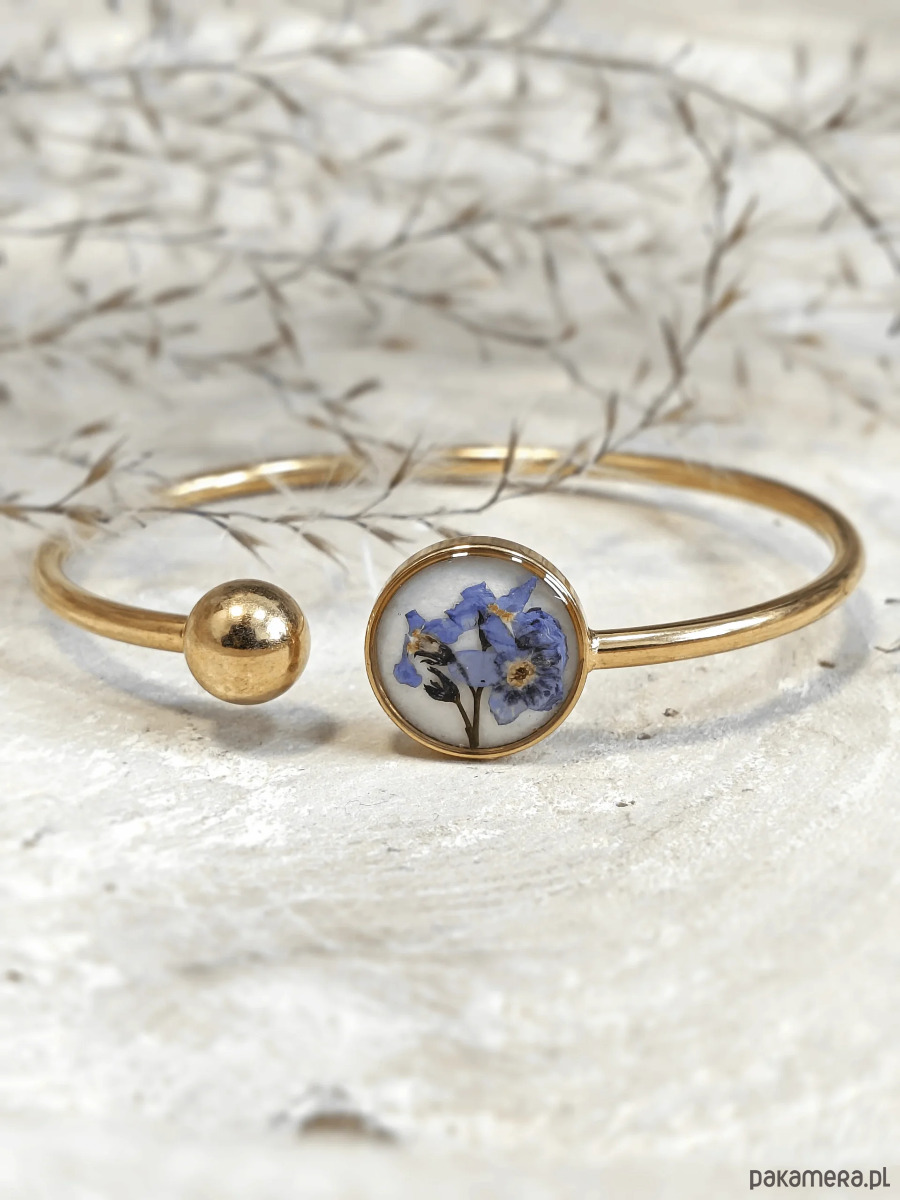 Odkryj uroczą bransoletkę z żywicy, w której zatopiono delikatną, suszoną niezapominajkę – symbol pamięci i wierności. Ta wyjątkowa bransoletka z niezapominajką to ręcznie robiona biżuteria, idealna dla kobiet ceniących subtelne i symboliczne dodatki. Niezapominajka, o drobnych, błękitnych kwiatach, od wieków kojarzona jest z trwałym uczuciem, pamięcią o bliskich i obietnicą "nie zapomnij o mnie". W tej bransoletce z żywicy, suszony kwiat został zatopiony w krystalicznie przejrzystej żywicy, dzięki czemu zachowuje swoje piękno na długo.