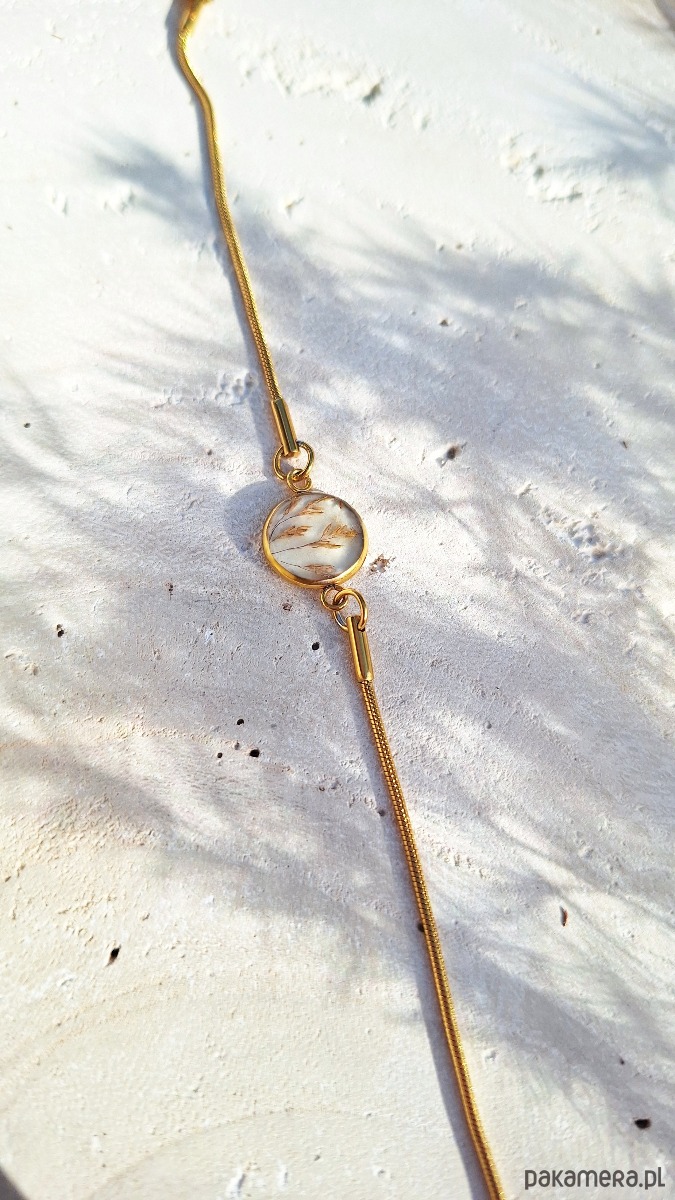 Baza bransoletki damskiej, wykonana z trwałej i hipoalergicznej stali chirurgicznej, zapewnia komfort noszenia i odporność na uszkodzenia. Ta stylowa bransoletka z żywicy to harmonijne połączenie naturalnego piękna z nowoczesnym designem. To subtelna bransoletka, a zarazem wyrazisty akcent, który doskonale dopełni każdą stylizację. Nosząc tę bransoletkę z zatopioną trawą, możesz poczuć bliskość natury i jej kojącą energię. Ta bransoletka z żywicą i trawą to idealny prezent dla miłośniczek natury i unikatowych dodatków.