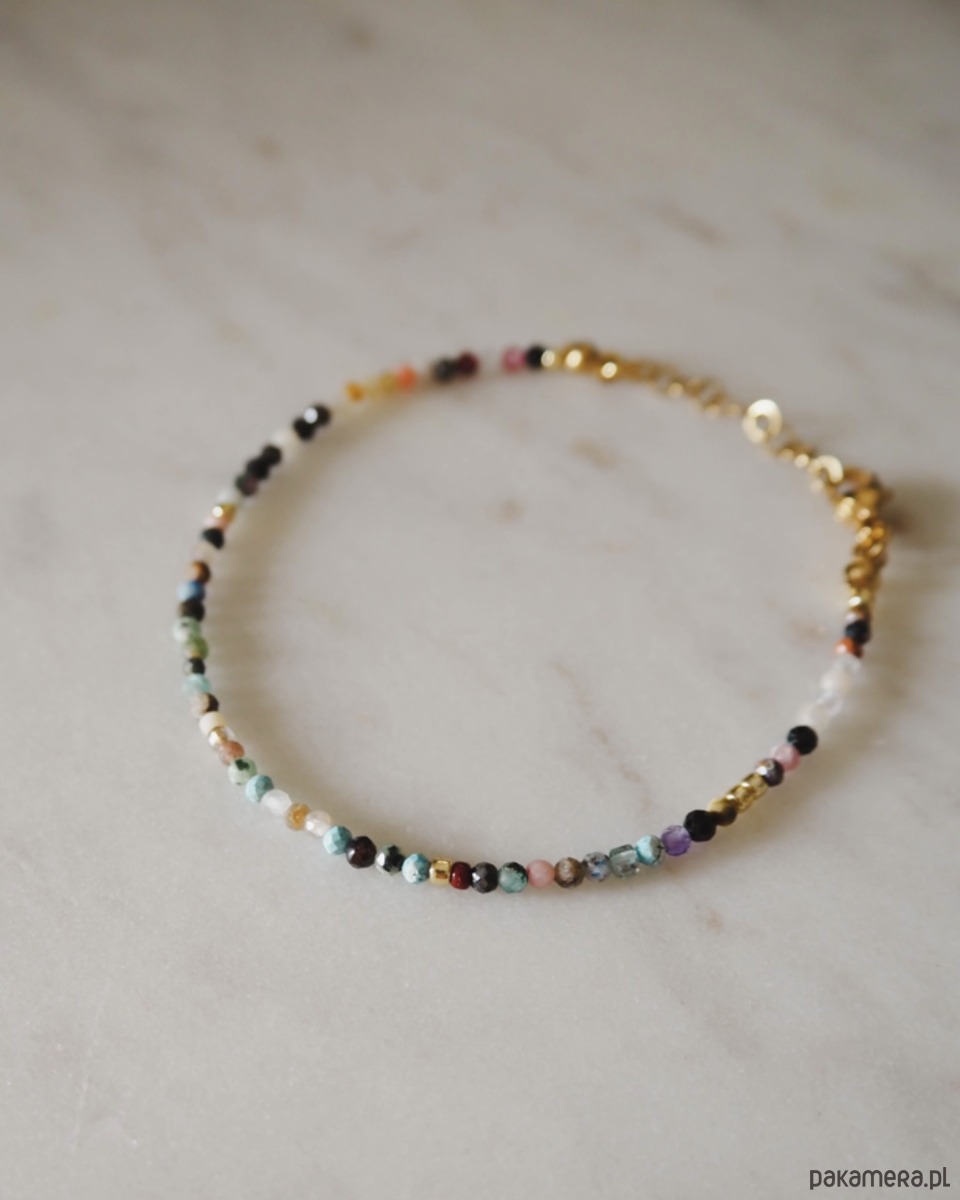 Ta radosna bransoletka jest zrobiona z drobnych kamieni naturalnych, m.in. cytryny, ametysty, magnezyty, kwarce, jaspisy i wiele innych.