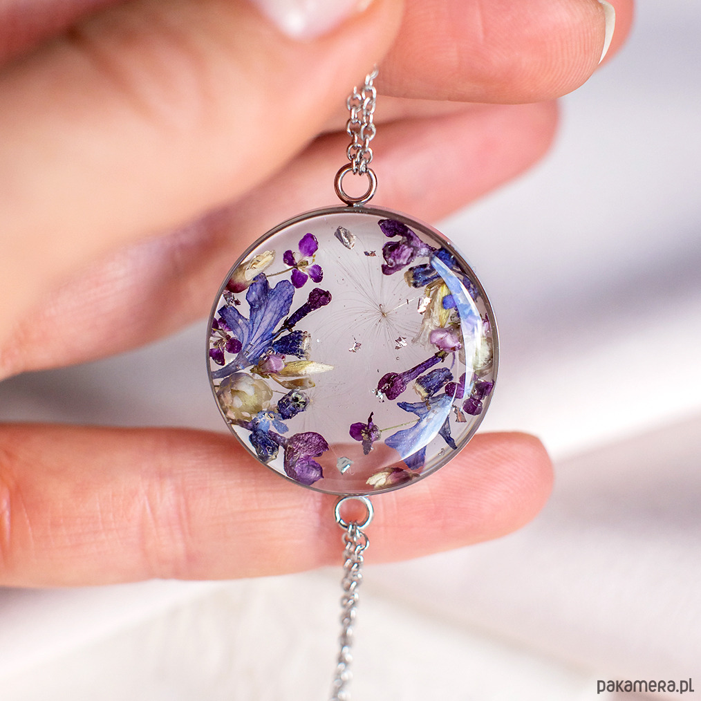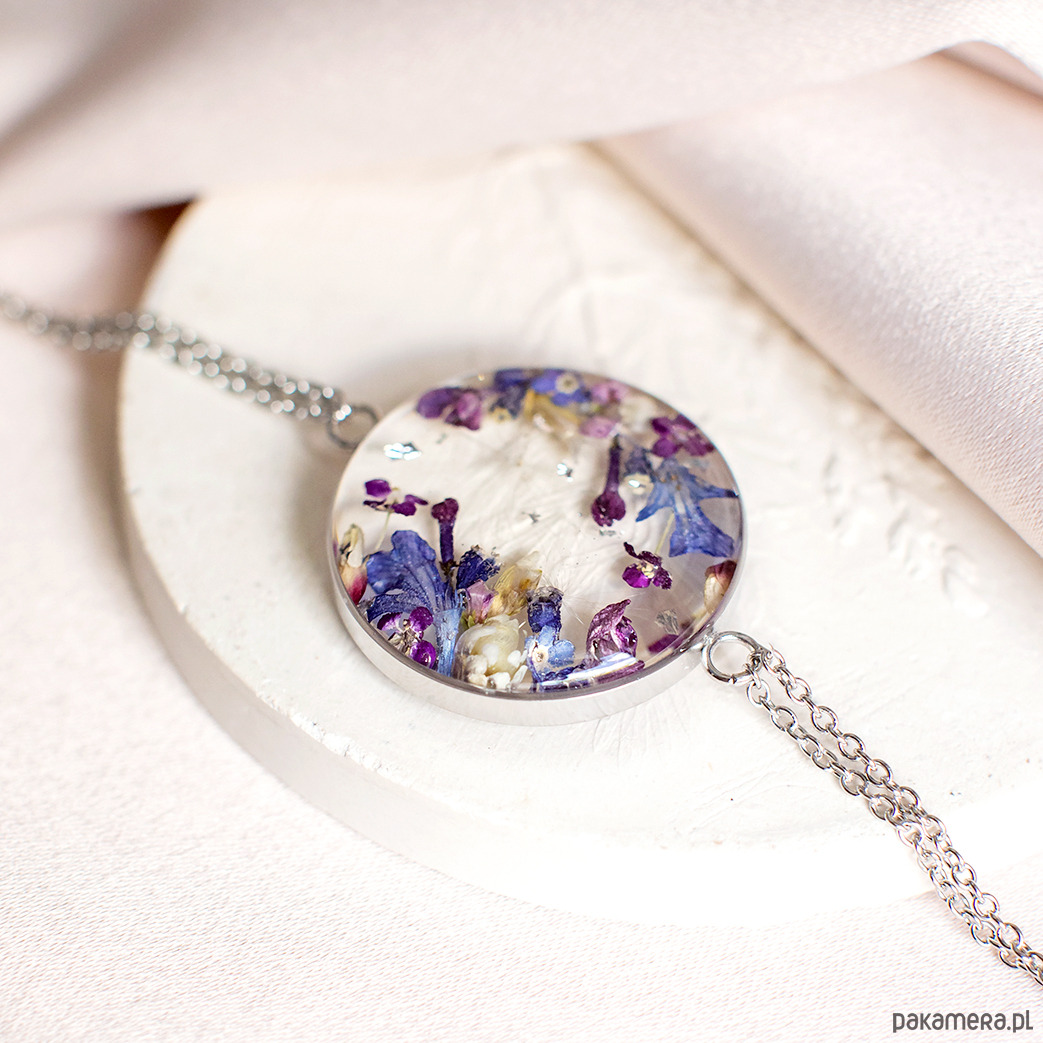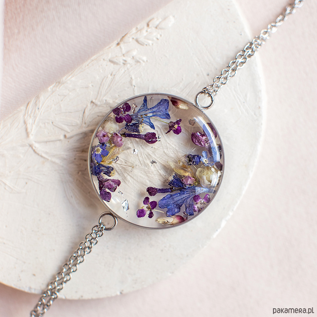 Bransoletka wykonana jest z żywicy epoksydowej z wykorzystaniem suszonych kwiatów. Metalowe elementy to stal nierdzewna szlachetna chirurgiczna