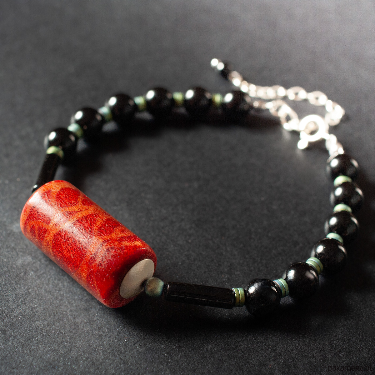 Bransoletka z koralem, onyksem i hematytem.[SB7]