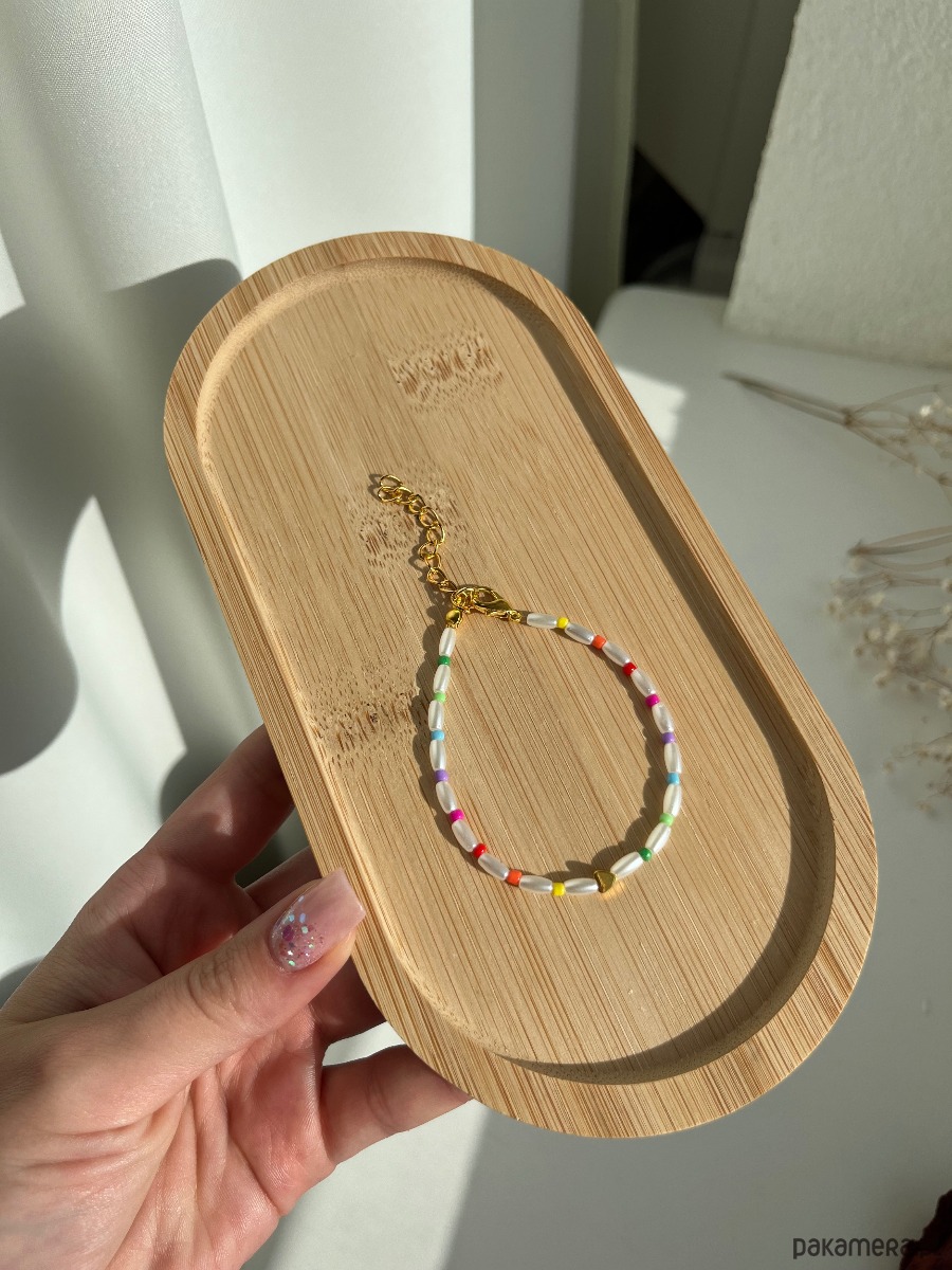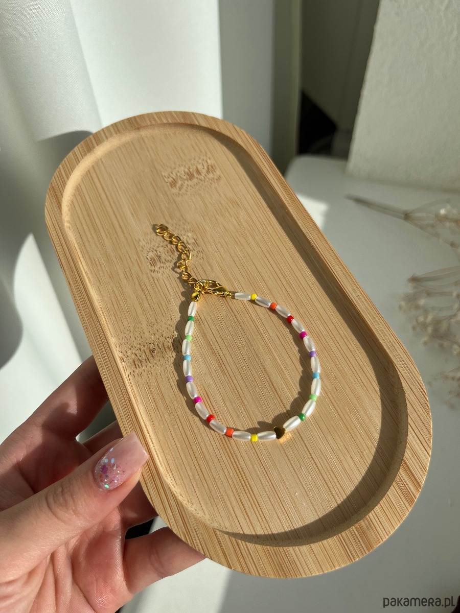 Bransoletka z lśniących koralików to dodatek pasujący do wielu stylizacji.