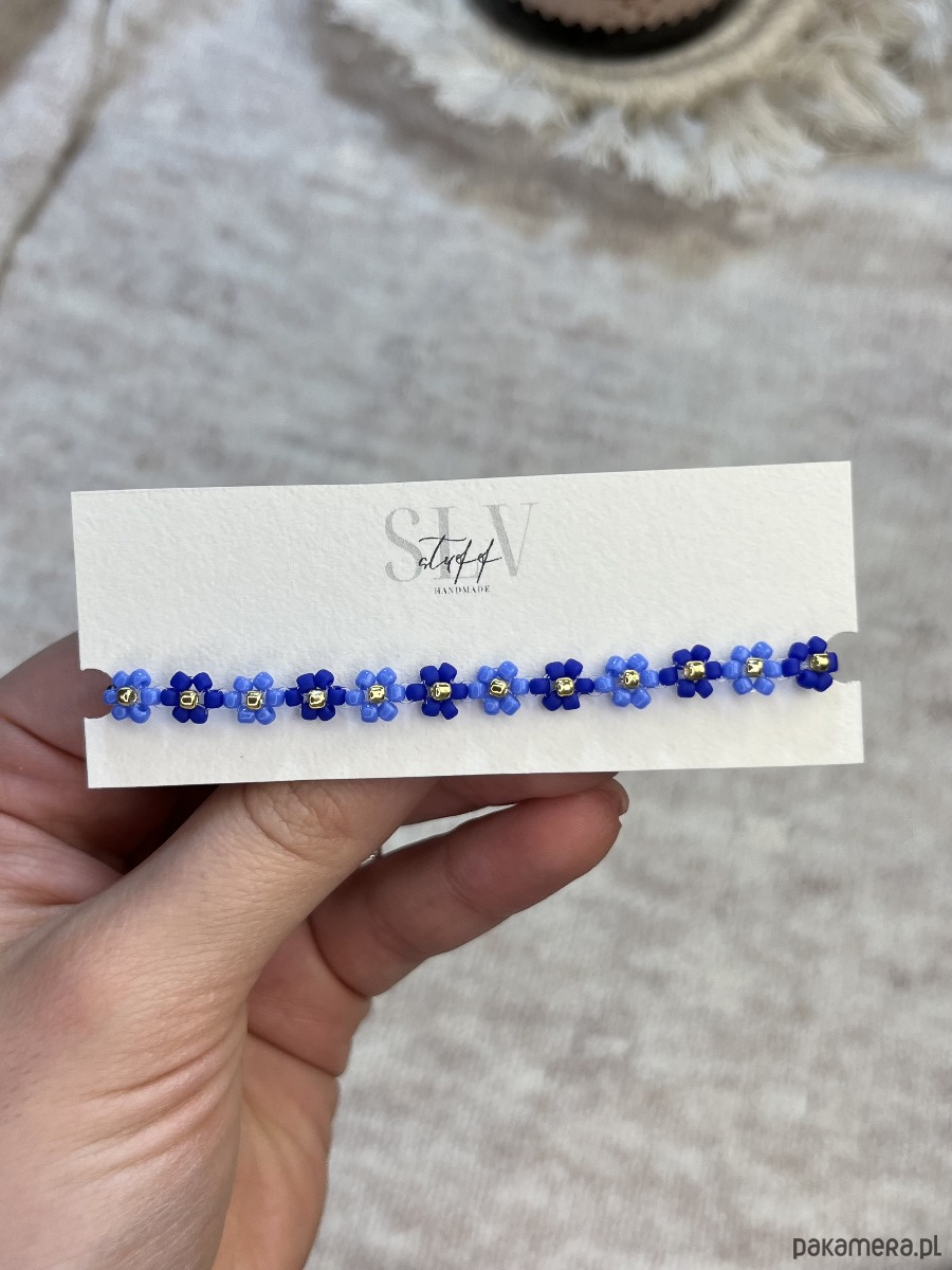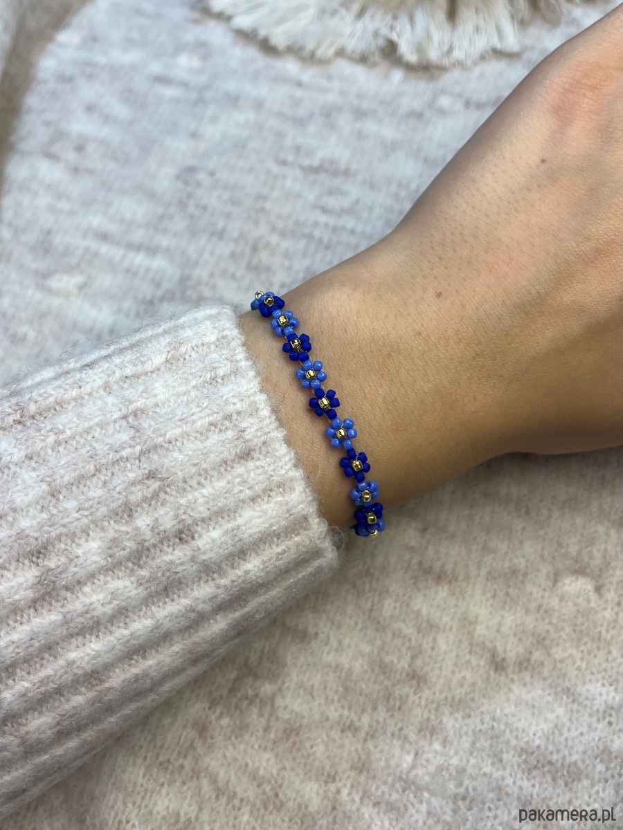 Bransoletka z kwiatowym motywem wykonana ze szklanych matowych koralików.
