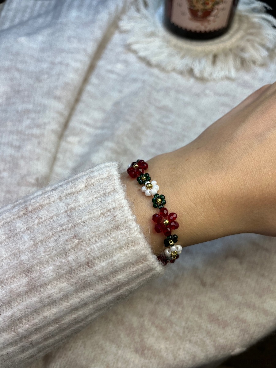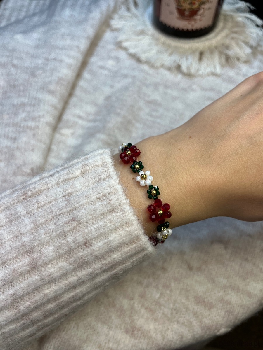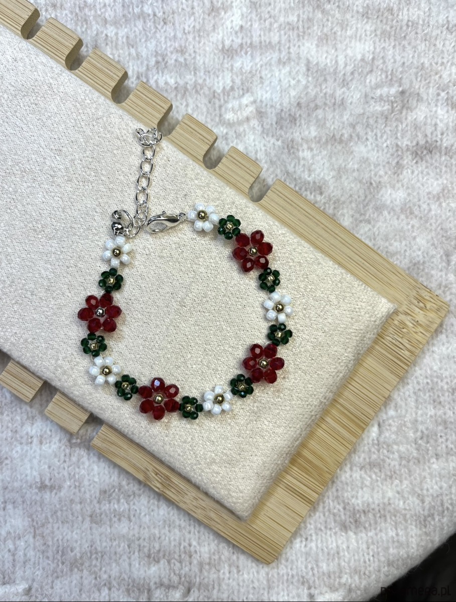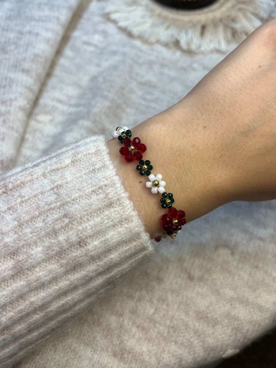 Bransoletka z kwiatowym motywem wykonana ze szklanych koralików.
