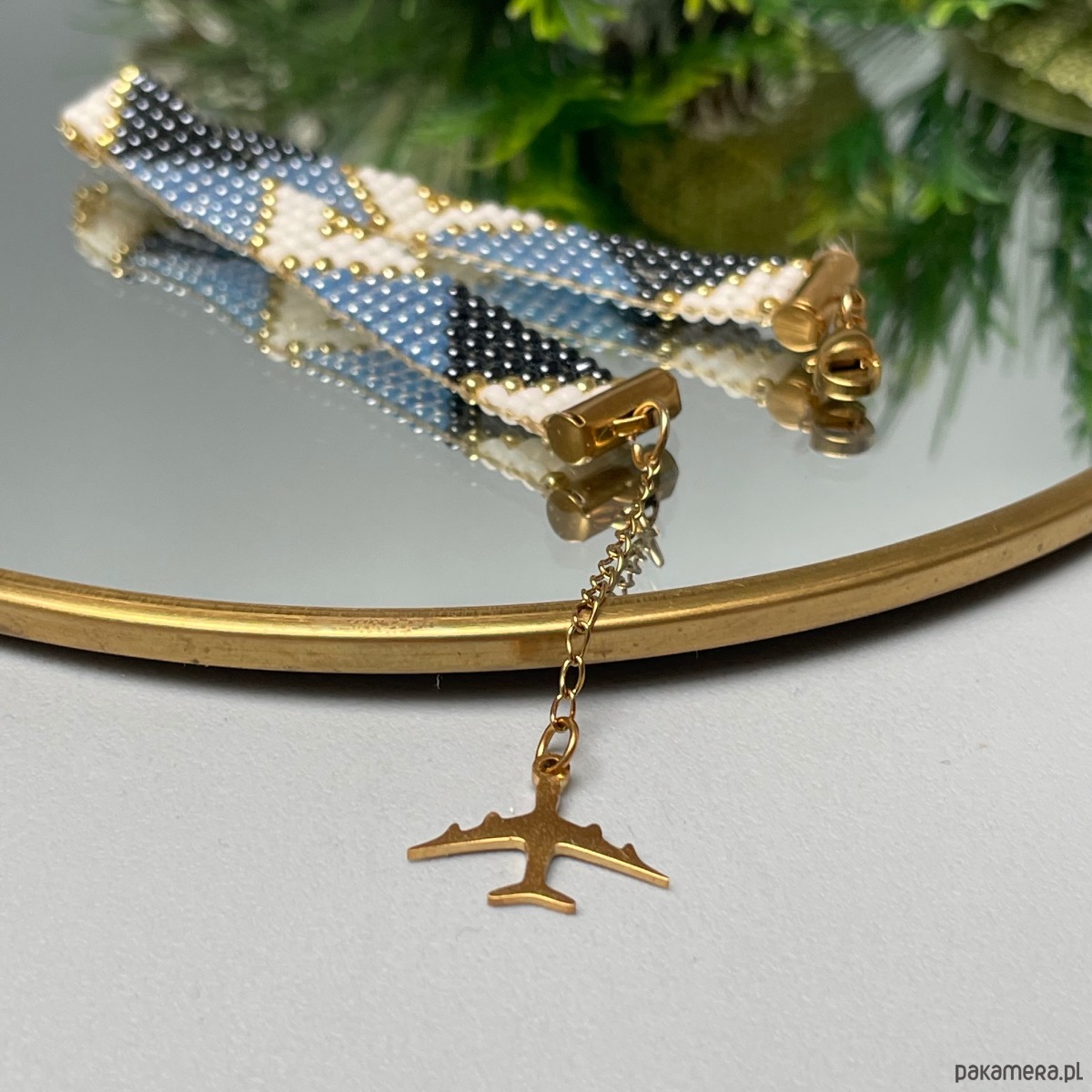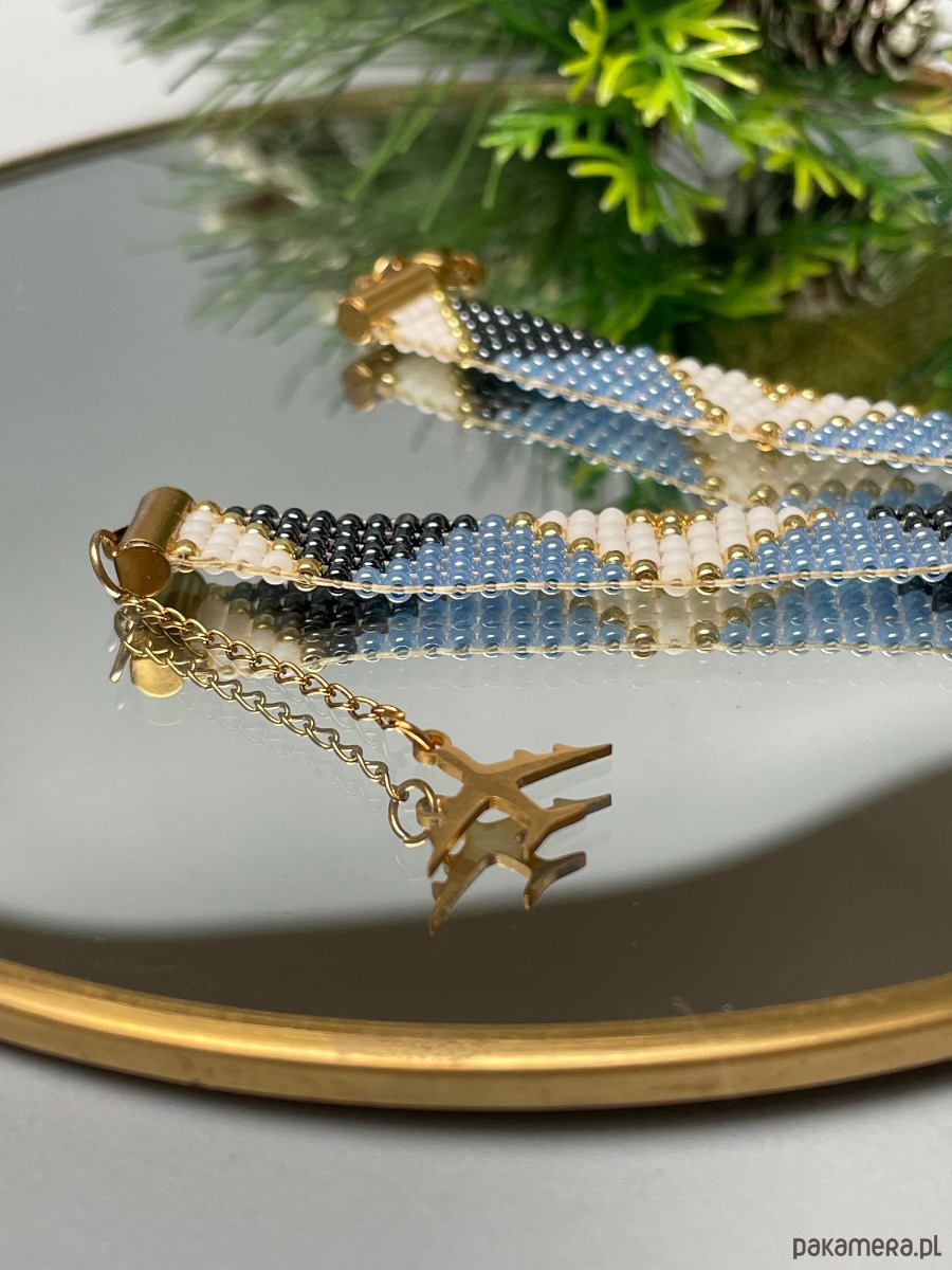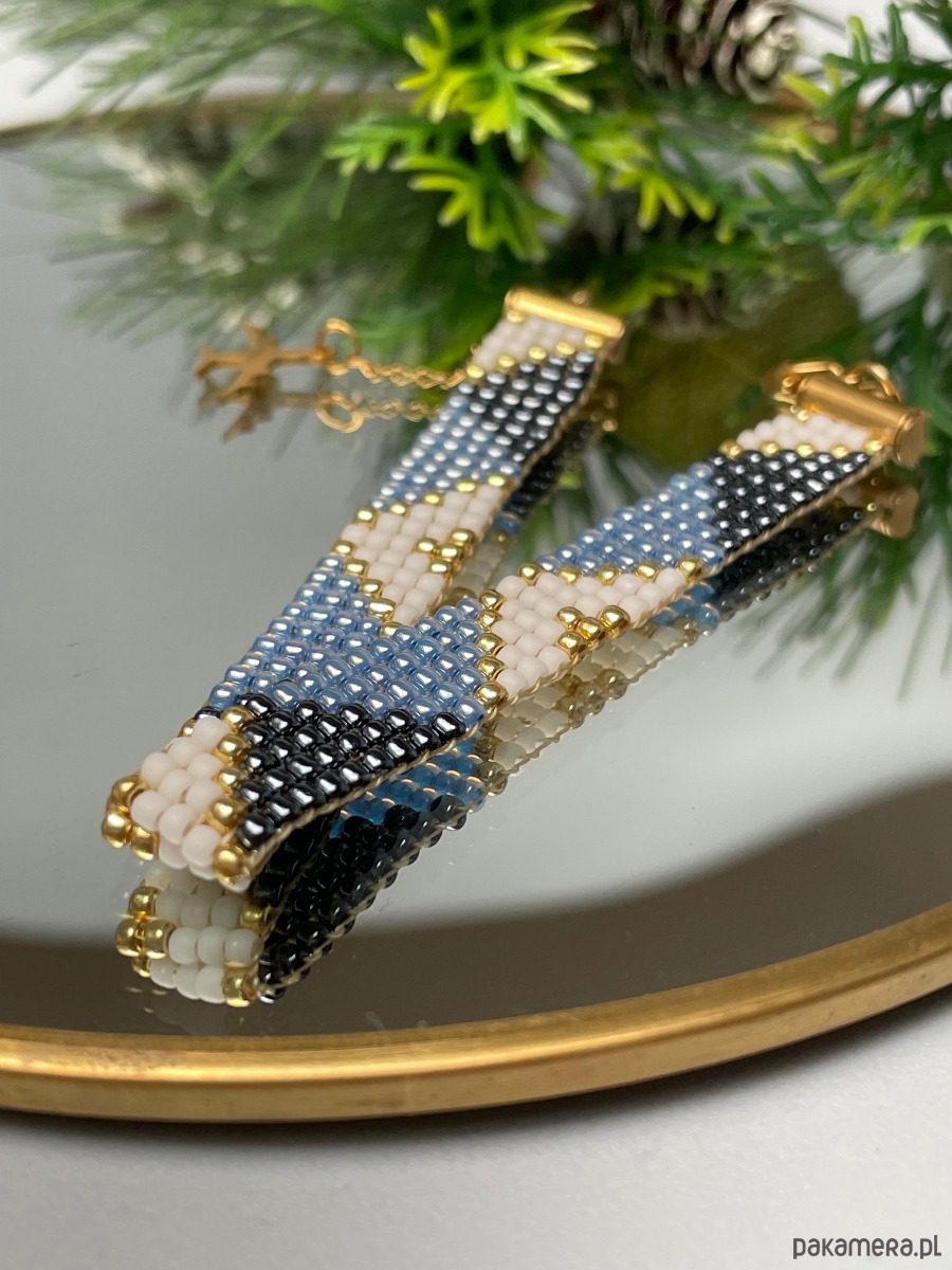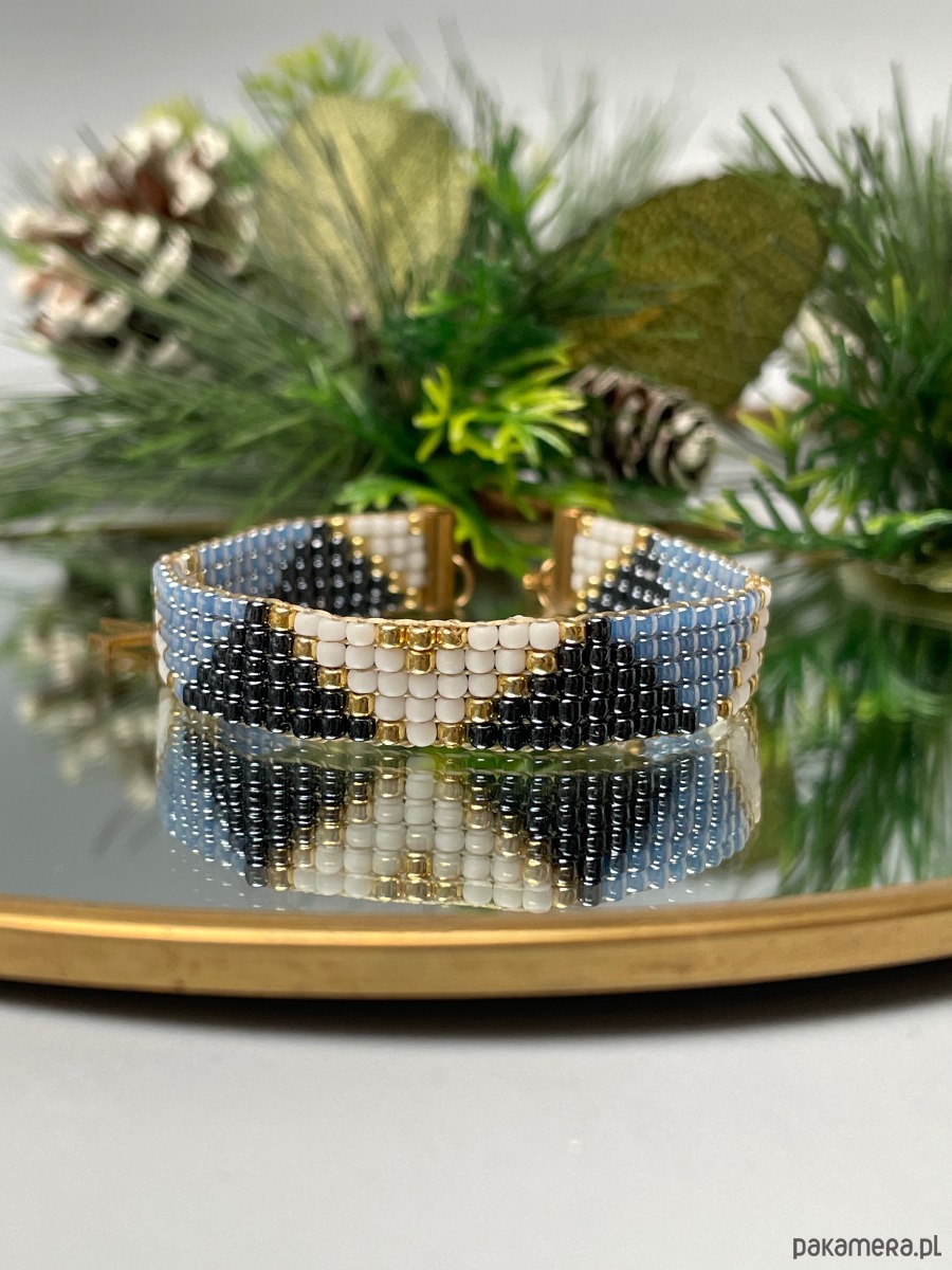 Bransoletka z koralików toho - bluesky to połączenie kolorów złota oraz odcieni niebieskiego i granatu. Idealnie pasuje do codziennych jak i eleganckich kreacji.