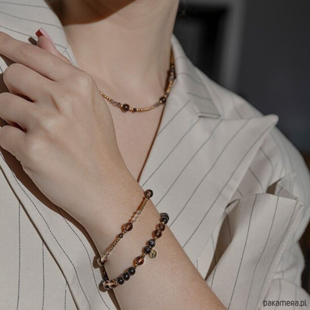 Bransoletka z kroplami Kwarcu Dymnego