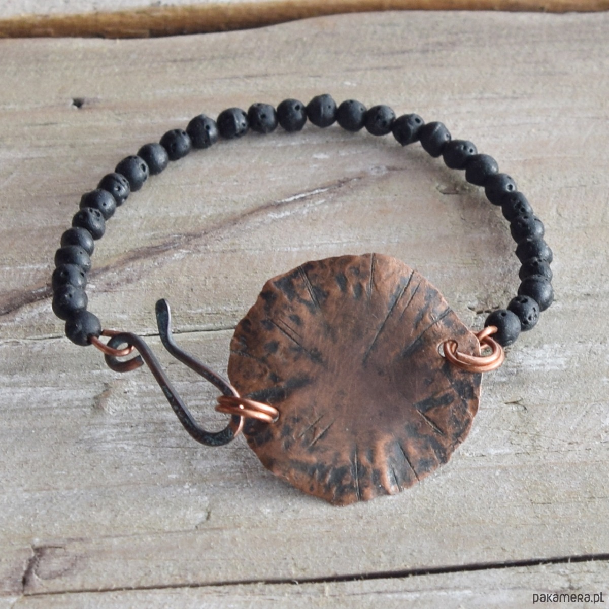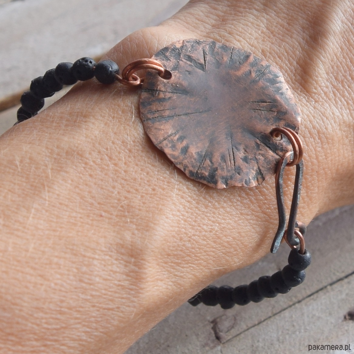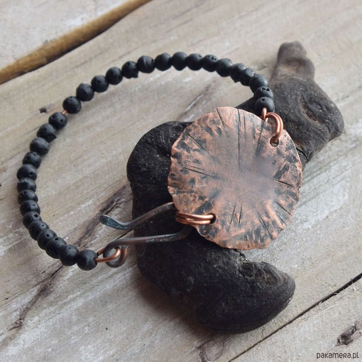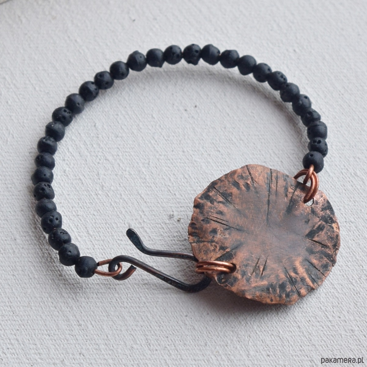 Bransoletka z kutej oksydowanej miedzi i lawy wulkanicznej /1/