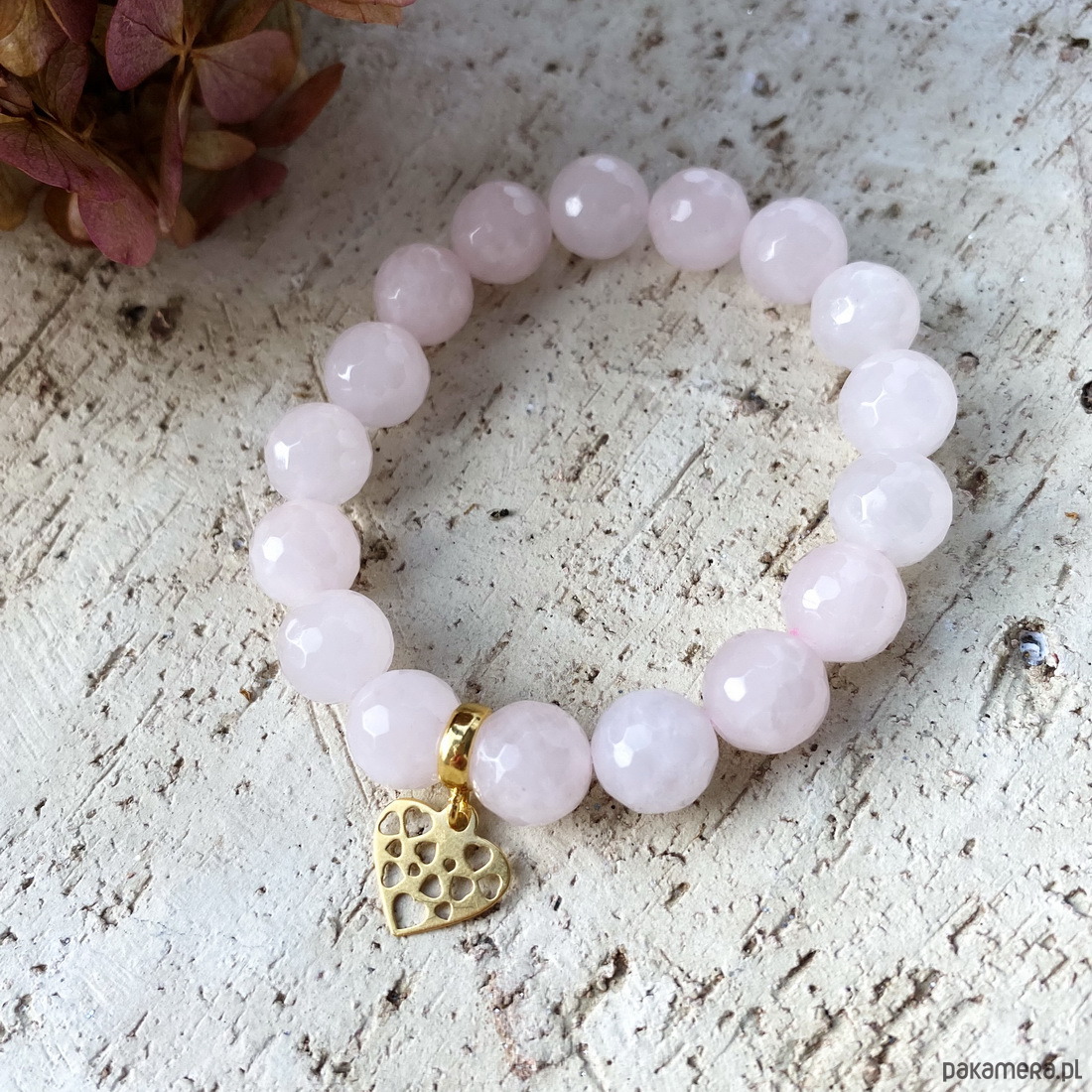 Bransoletka z kwarców różowych- srebro 925 pozłacane