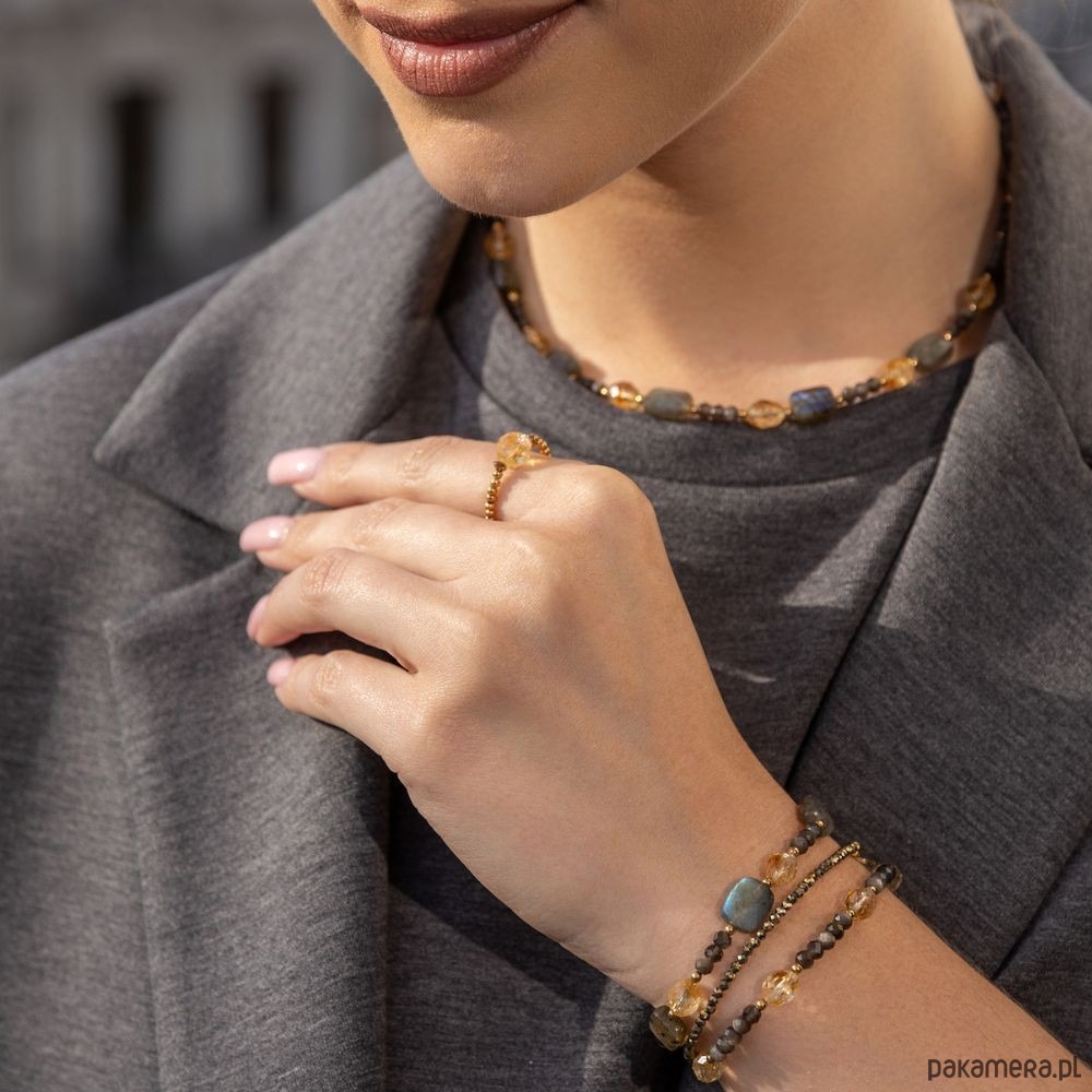 Bransoletka wykonana z Hematytu, Kwarcu Dymnego i Cytrynu to wyrazista kompozycja, która łączy w sobie moc naturalnych kamieni. Hematyt dodaje pewności siebie, Cytryn emanuje ciepłem i optymizmem, a Kwarc Dymny pomaga zachować spokój i równowagę.