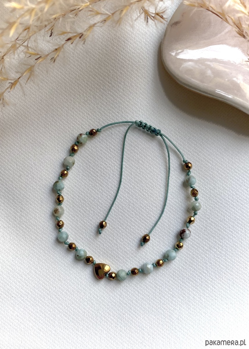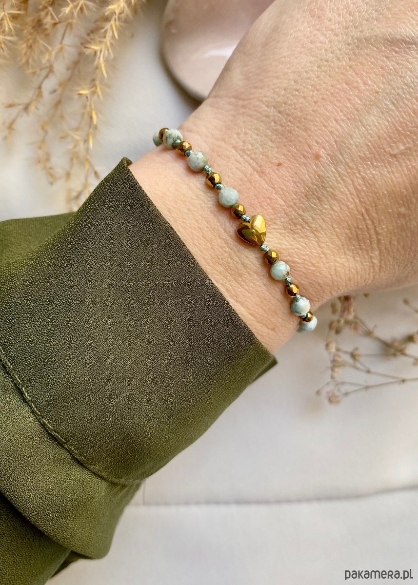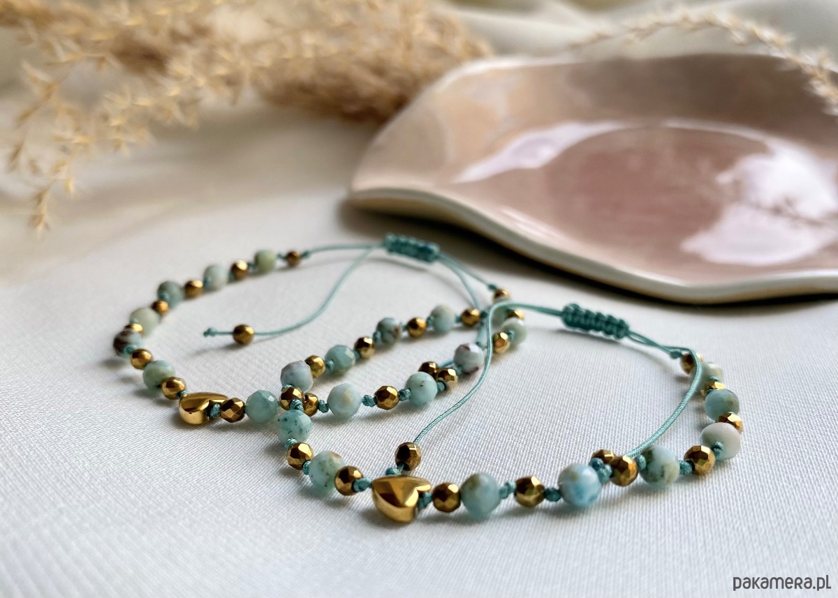 Bransoletka z Larimar oraz sercem z hematytu na jubilerskim sznurku to idealny wybór dla osób ceniących sobie wyjątkową, ręcznie wykonaną biżuterię z naturalnych kamieni. Połączenie niebieskiego larimaru z połyskującym złotym sercem z hematytu tworzy elegancki, a zarazem harmonijny dodatek, który doskonale pasuje do każdej stylizacji – zarówno codziennej, jak i wieczorowej.