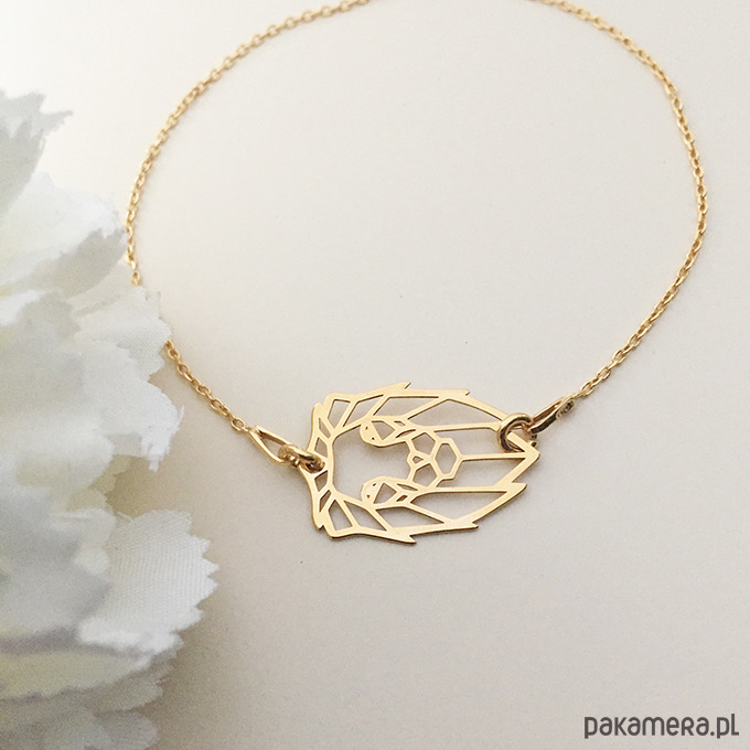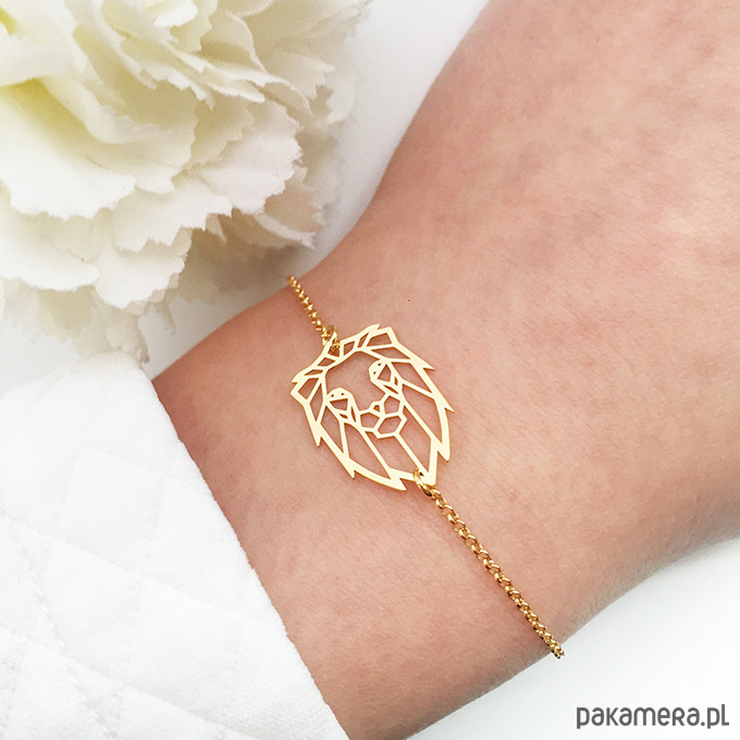 Piękna bransoletka z głową lwa. Delikatna i wyjątkowa nawiązująca do sztuki origami.. Unikalny design i wykonanie. Wykonana ze srebra próby 925 i złocona 24 k złotem, może być personalizowana Twoją literką lub kamieniem, lub kryształkiem Swarovski.