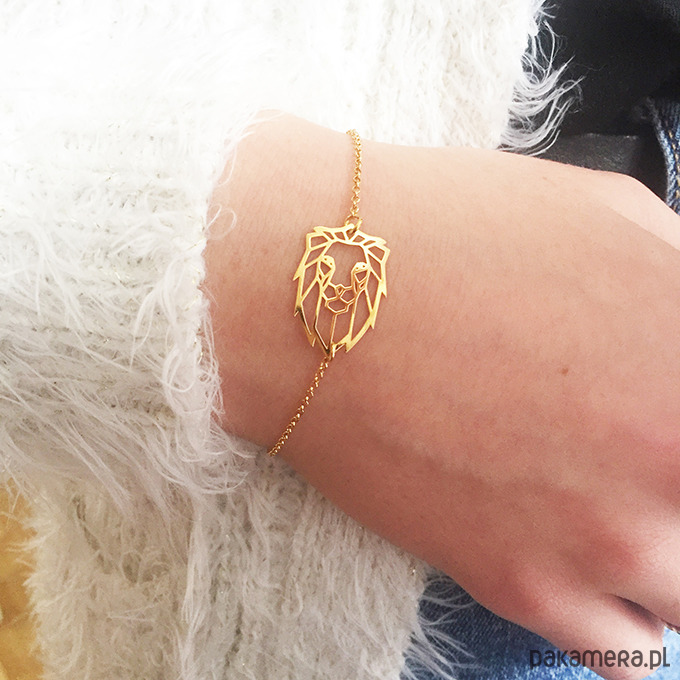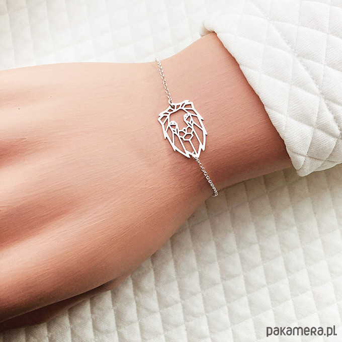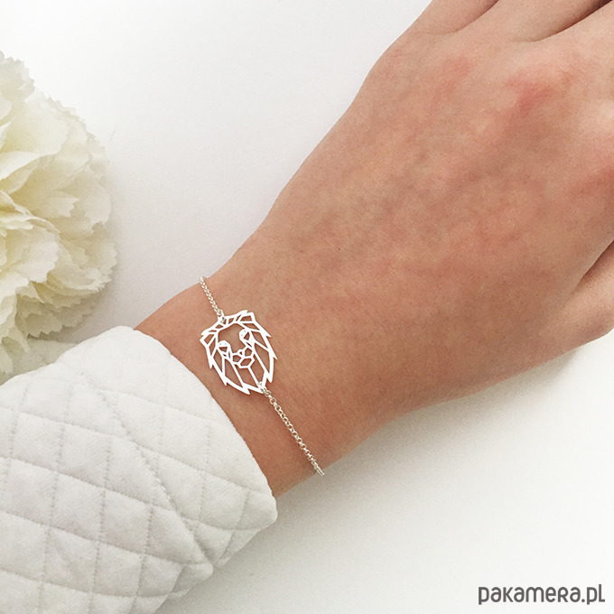 Piękna, wyjątkowa bransoletka z zawieszką w kształcie głowy lwa, inspirowany sztuką origami – połączenie delikatności i odważnego, nowoczesnego designu.