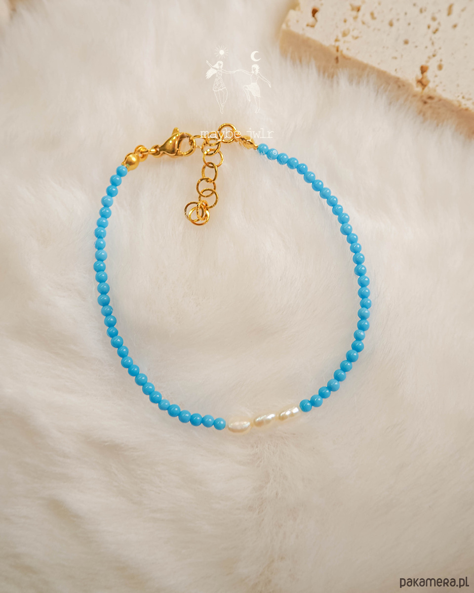 To połączenie kamieni, która zachwyca odcieniami mlecznej perełki i niebieskiego magnezytu.