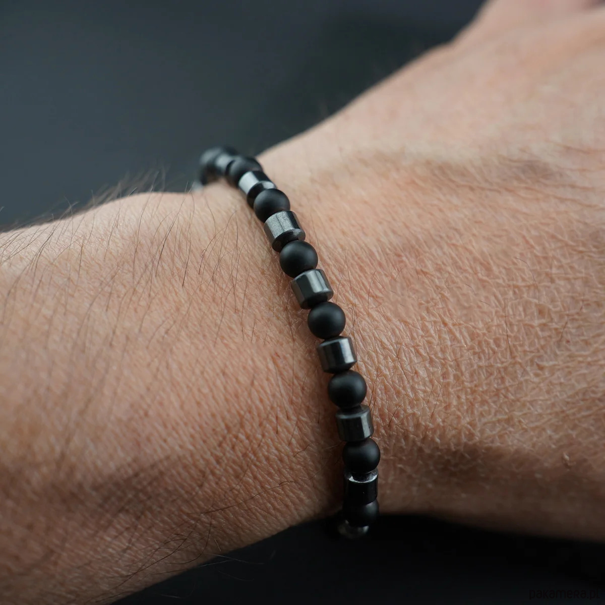 Bransoletka z matowego onyksu i srebrnego hematytu (6mm)