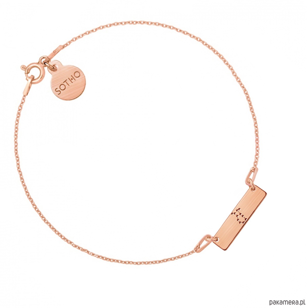 Złota matowa bransoletka łańcuszkowa zdobiona konstelacją zodiakalną Bliźniąt i zawieszką z logo marki. Całość wykonana ze srebra 925 powlekanego 18 karatowym różowym złotem.