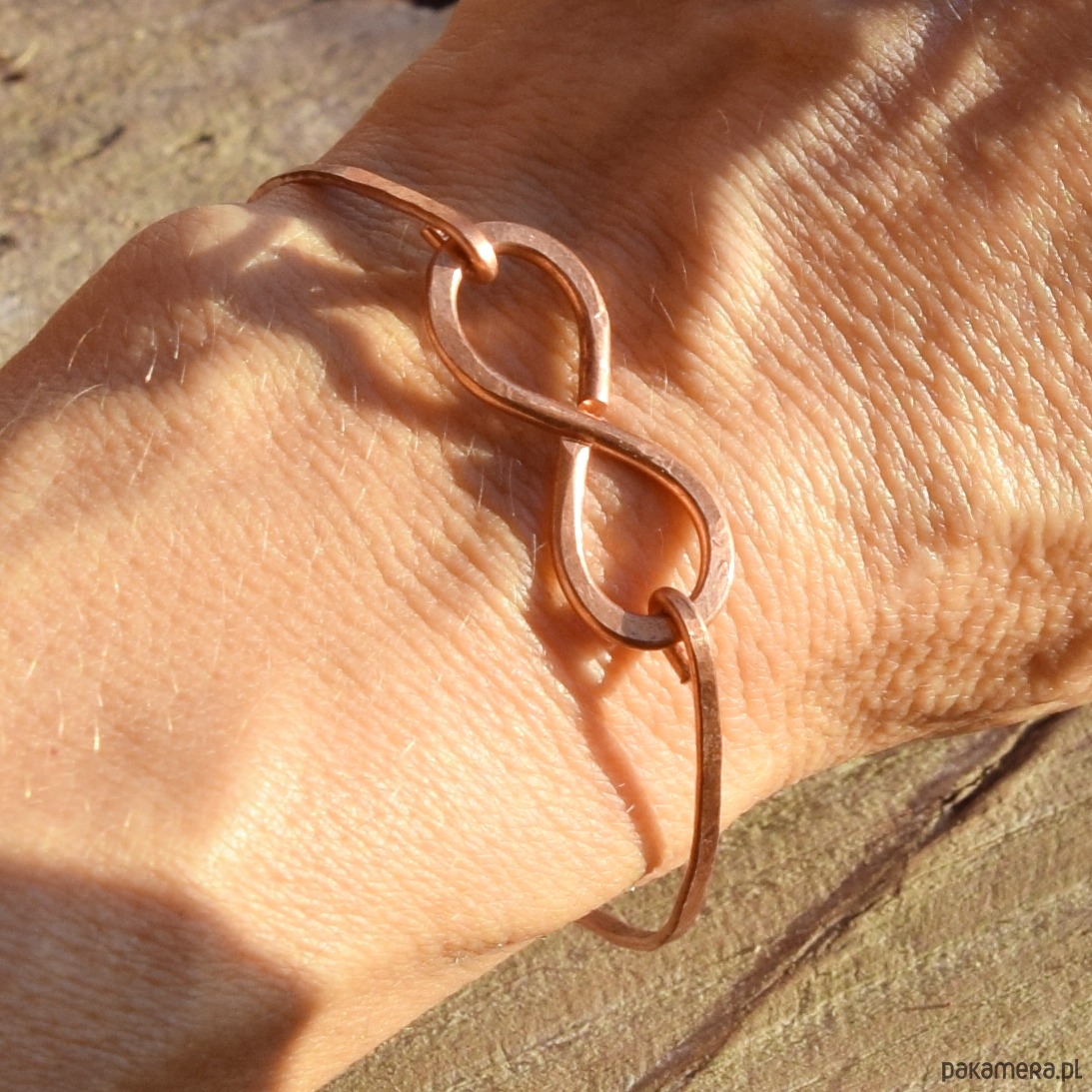 Bransoletka wykonana z ręcznie kutej miedzi z symbolem nieskończoności.