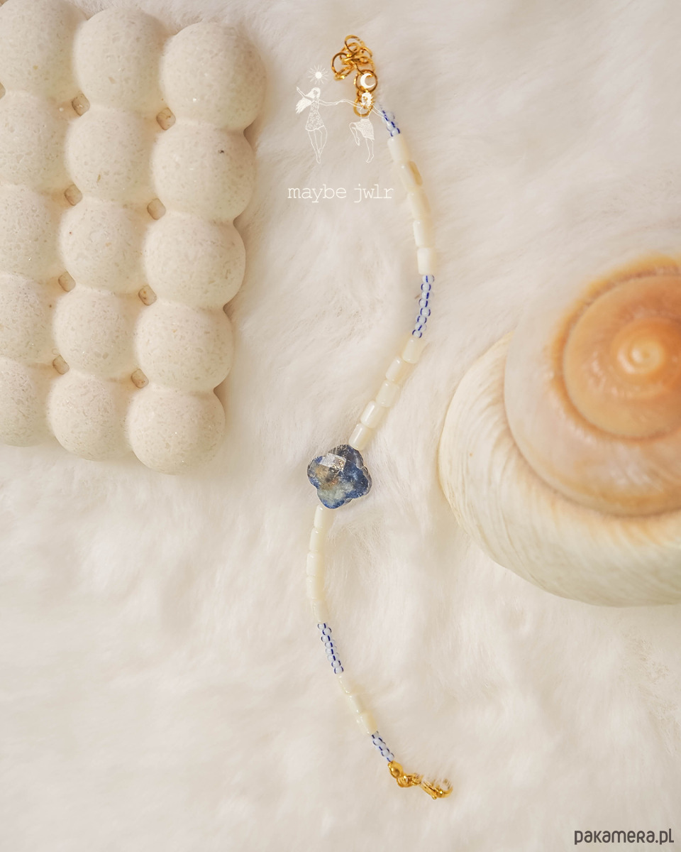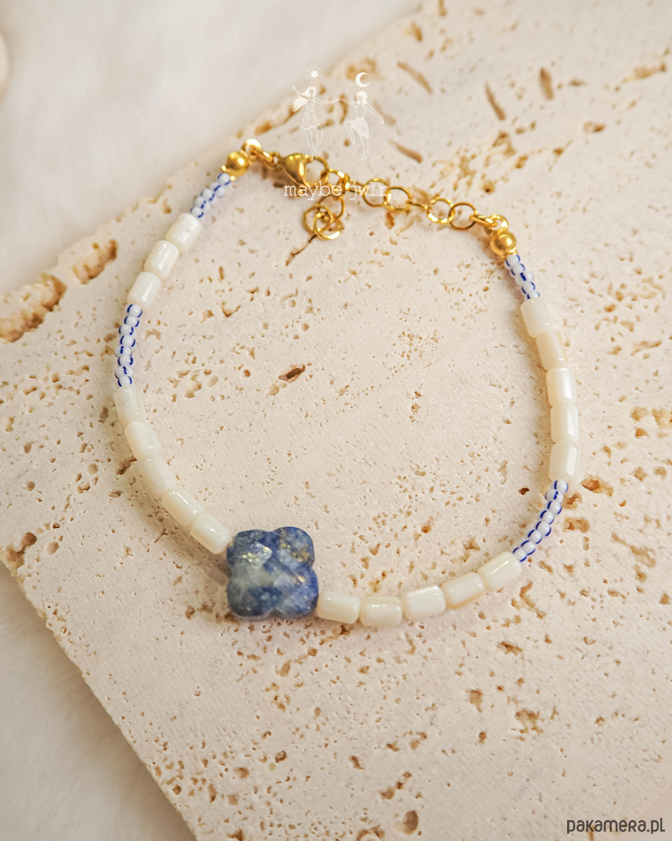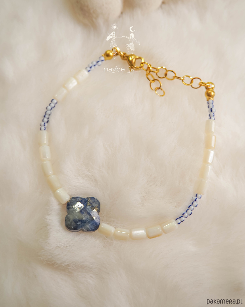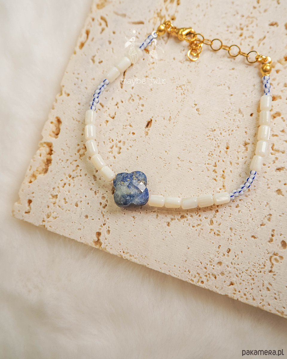 To połączenie kamieni, która zachwyca odcieniami mlecznej muszli i niebieskiego lapis lazuli.