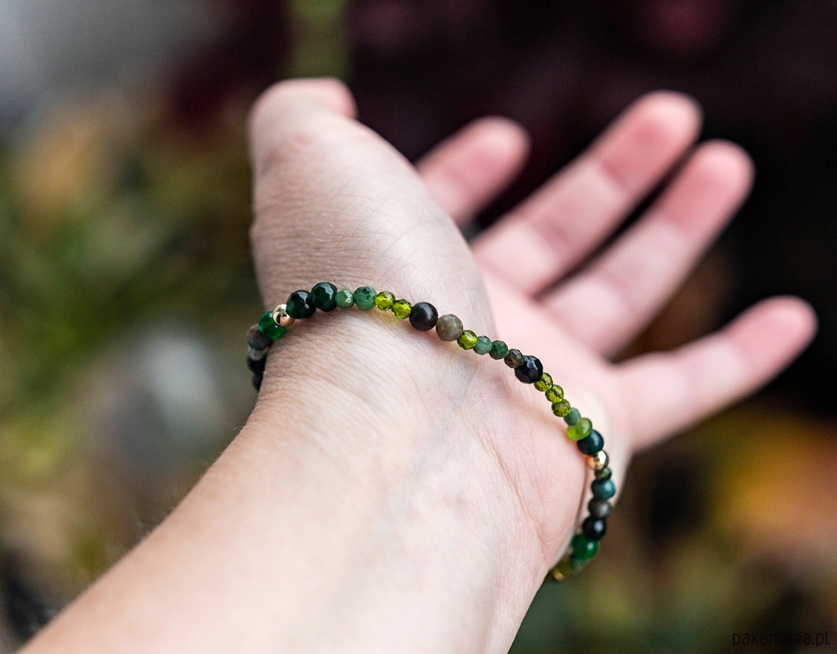 Bransoletka z naturalnych kamieni z leśnym motywem