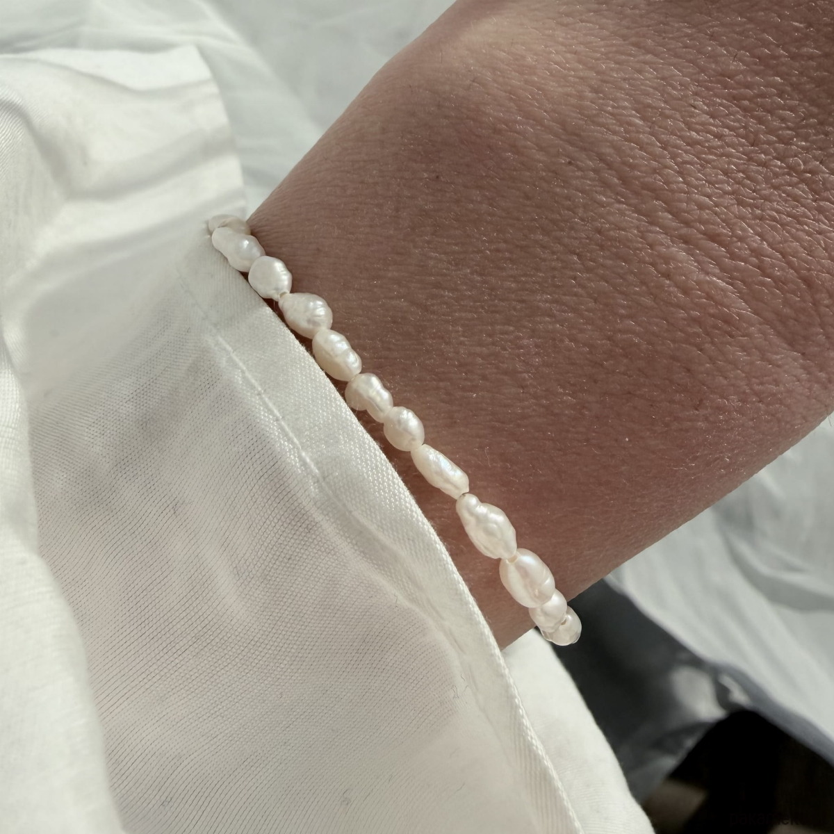 Ponieważ bransoletka wykonana jest z naturalnych pereł, mogą one zawierać drobne wrostki, smugi lub delikatne różnice w odcieniu czy wielkości. To ich naturalne cechy – nie wady. Dzięki temu każdy egzemplarz jest unikalny i niepowtarzalny.