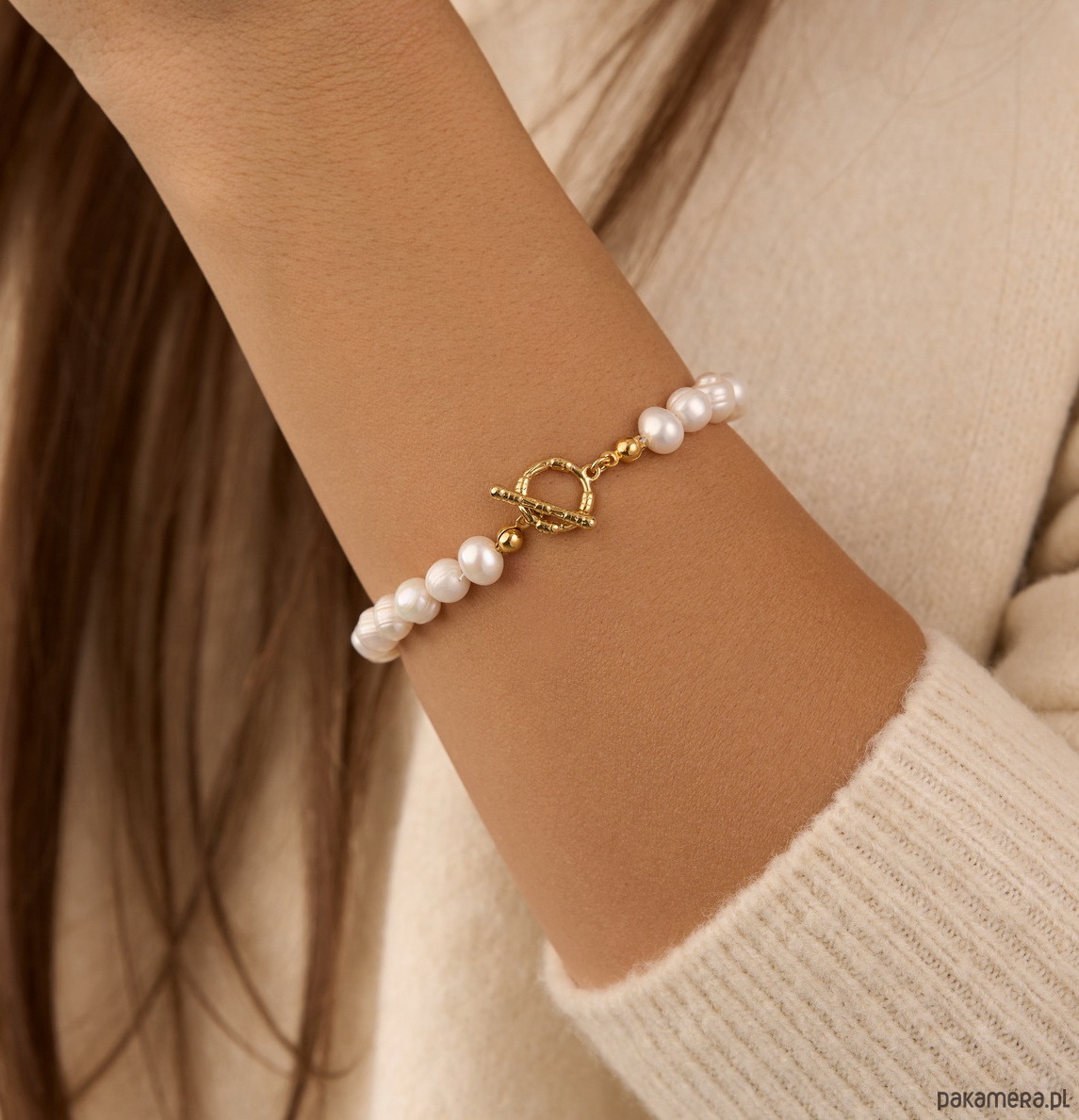 Bransoletka z naturalnych pereł słodkowodnych oraz srebra 925 pozłacanego