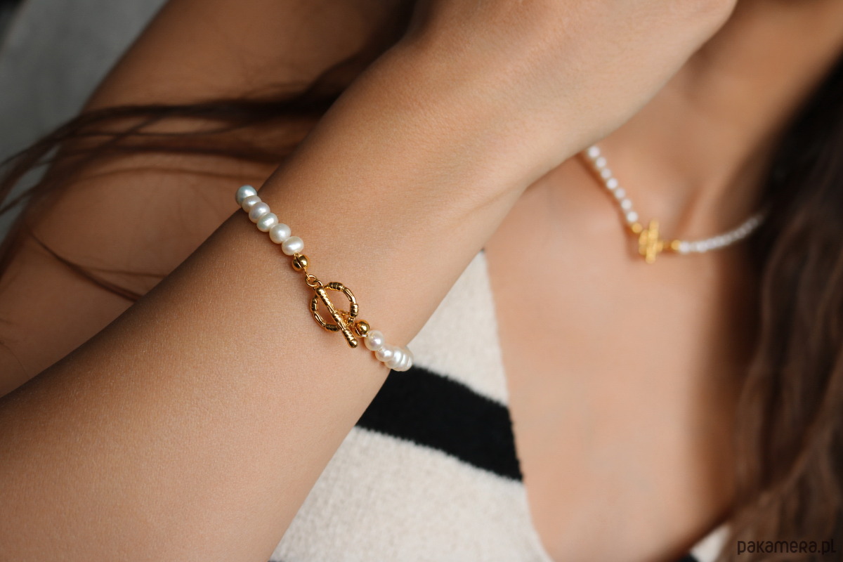 Bransoletka z naturalnych pereł słodkowodnych oraz srebra 925 pozłacanego