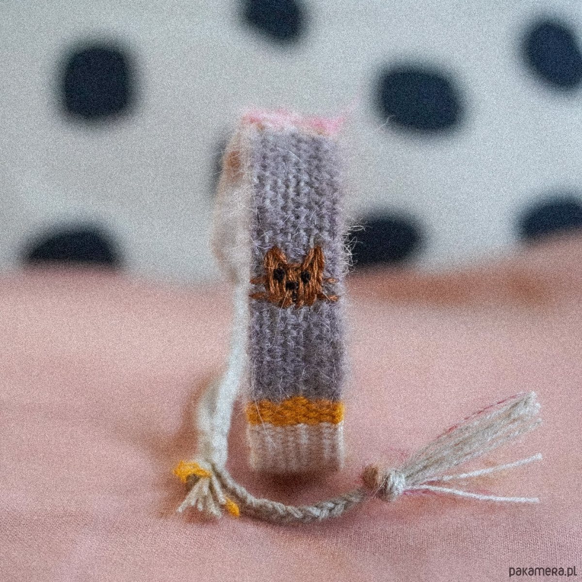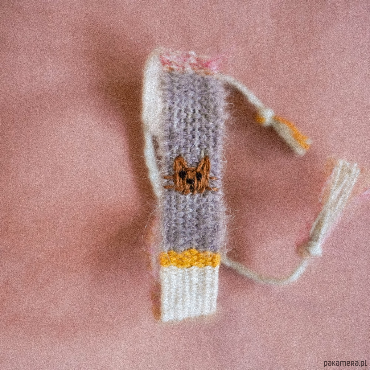 Bransoletka z nici na sznurku z haftowanym kotkiem