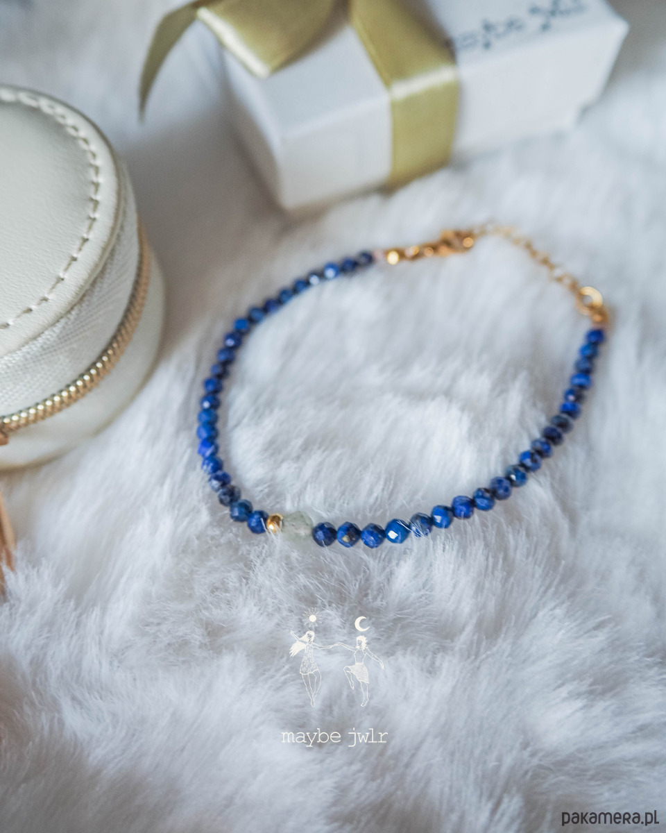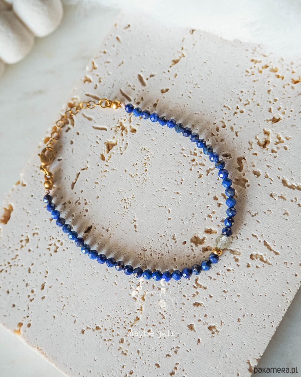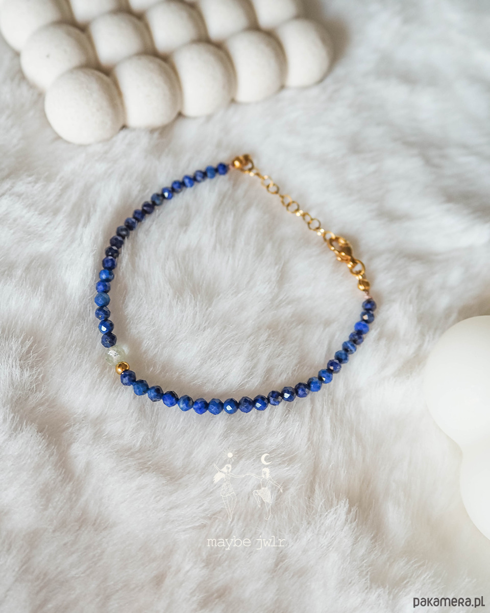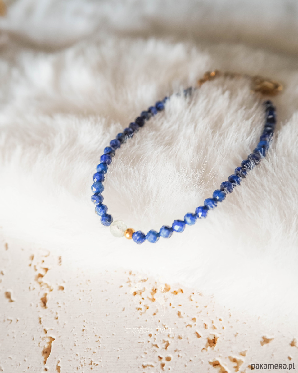 Delikatna, a jednocześnie pełna charakteru — ta bransoletka została wykonana z drobnych, ok. 3-milimetrowych kamieni lapis lazuli, znanych ze swojego głębokiego, królewskiego odcienia niebieskiego. To kamień, który od wieków symbolizuje mądrość, jasność myśli i wewnętrzną odwagę. Nosząc go, możesz poczuć subtelne wsparcie w podejmowaniu decyzji, wyrażaniu siebie i zachowywaniu spokoju w codziennym pędzie.